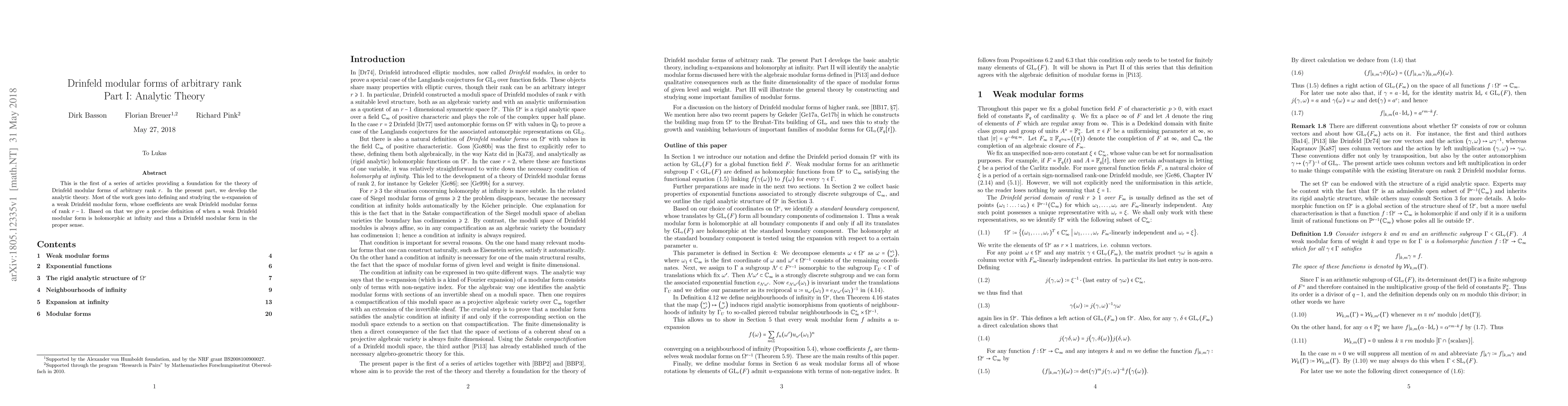 This paper lays the foundation for the theory of Drinfeld modular forms of arbitrary rank by developing the analytic theory, focusing on defining and studying the u-expansion of weak Drinfeld modular forms and providing a precise definition of holomorphic Drinfeld modular forms at infinity.
