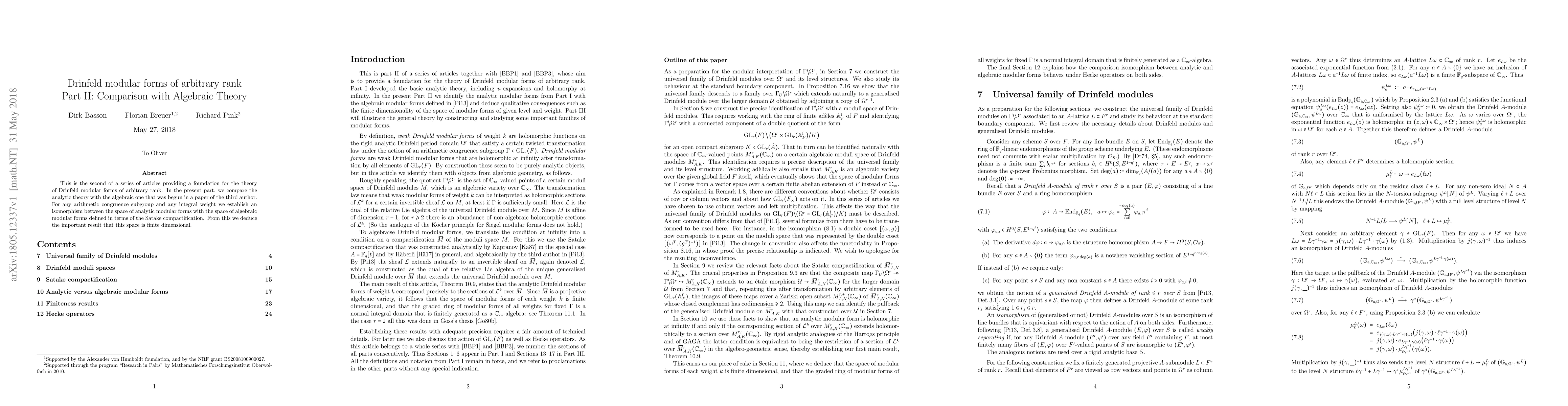 This paper compares the analytic theory of Drinfeld modular forms of arbitrary rank with the algebraic theory, establishing an isomorphism between analytic and algebraic modular forms for any arithmetic congruence subgroup and integral weight, thereby proving the finite dimensionality of the space.