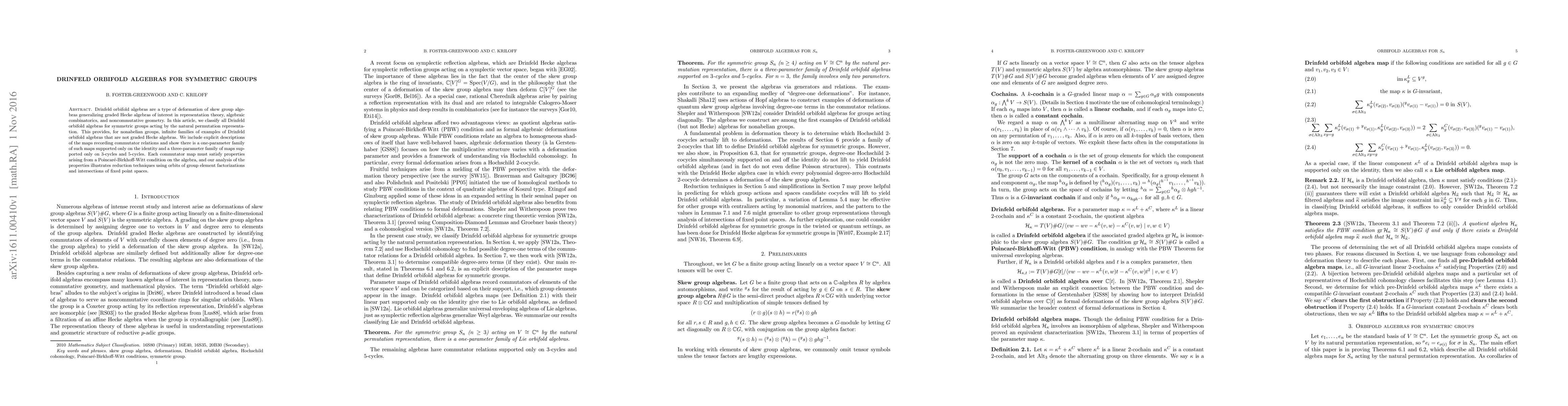 This paper classifies Drinfeld orbifold algebras for symmetric groups, providing infinite families of non-graded Hecke algebra examples. It reveals a one-parameter family of commutator maps supported on the identity and a three-parameter family on 3-cycles and 5-cycles, analyzing their properties through Poincaré-Birkhoff-Witt conditions and orbit factorizations.