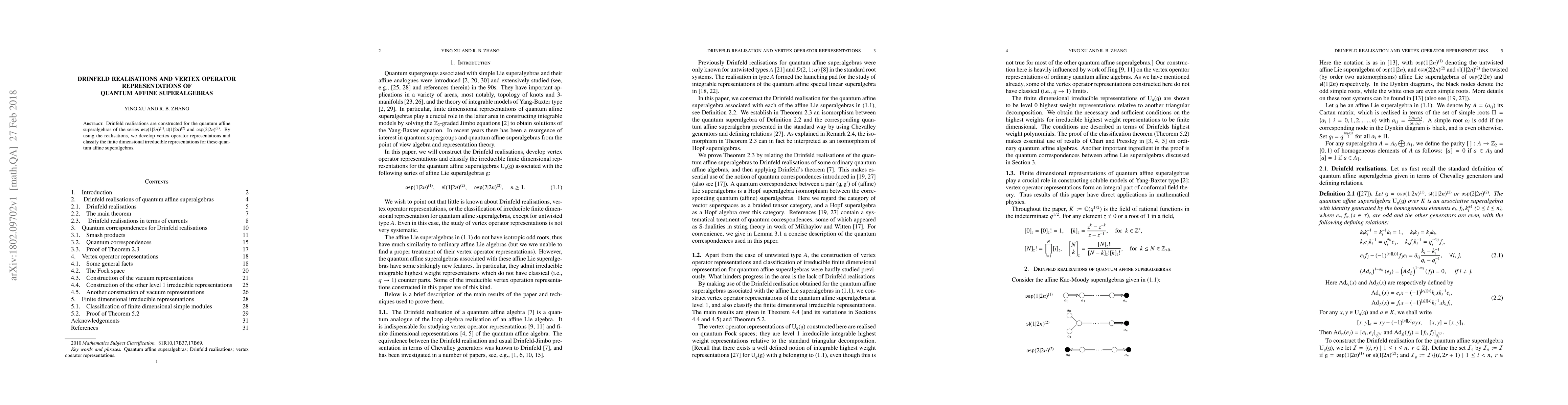 Drinfeld realisations are constructed for the quantum affine superalgebras of the series ${\rm\mathfrak{osp}}(1|2n)^{(1)}$,${\rm\mathfrak{sl}}(1|2n)^{(2)}$ and ${\rm\mathfrak{osp}}(2|2n)^{(2)}$. By using the realisations, we develop vertex operator representations and classify the finite dimensional irreducible representations for these quantum affine superalgebras.