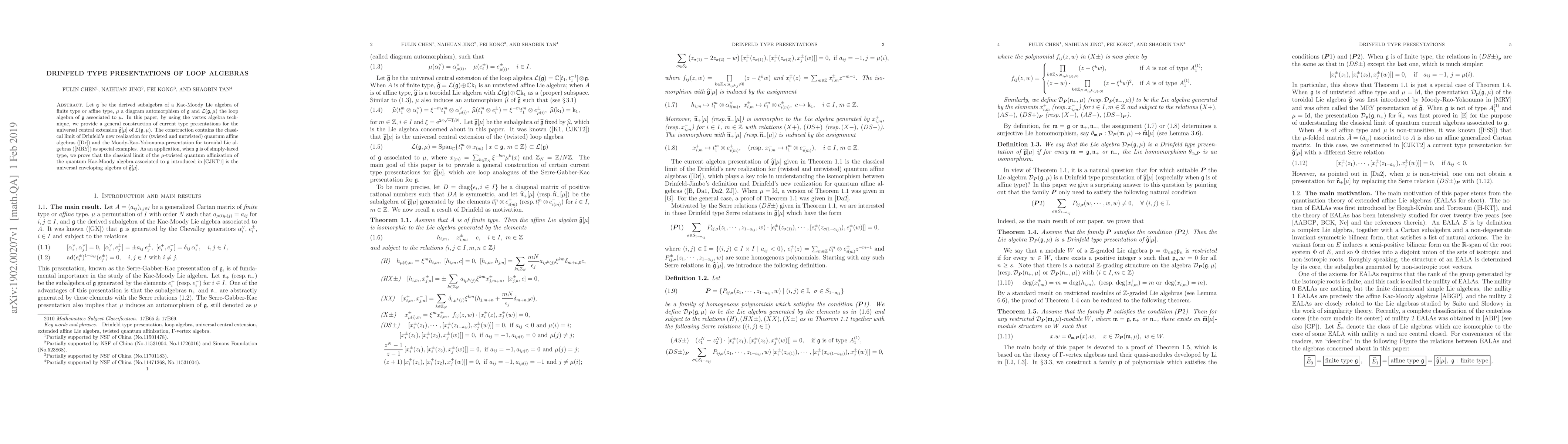 This paper constructs current type presentations for the universal central extension of loop algebras using vertex algebra techniques, generalizing Drinfeld's realization and the Moody-Rao-Yokonuma presentation. It also proves that the classical limit of the $\mu$-twisted quantum affinization of a quantum Kac-Moody algebra is the universal enveloping algebra of the corresponding extended loop algebra.