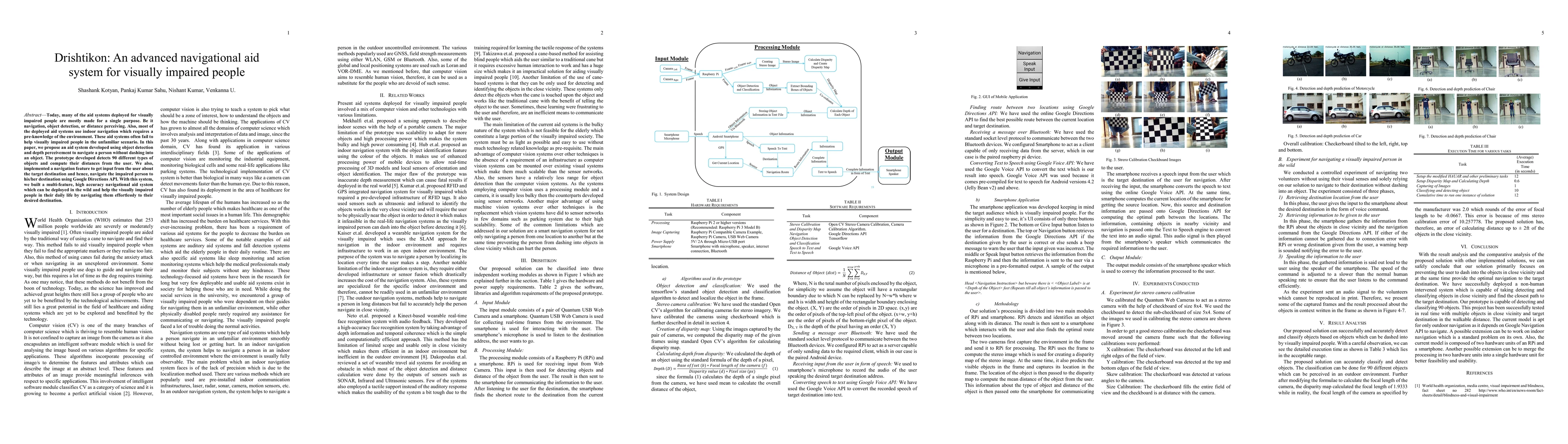 This paper proposes Drishtikon, an advanced navigational aid system for visually impaired individuals, combining object detection and depth perception to navigate without collisions. The system can detect 90 object types and compute distances, and uses Google Directions API to guide users to their destinations, offering a versatile solution for outdoor navigation.