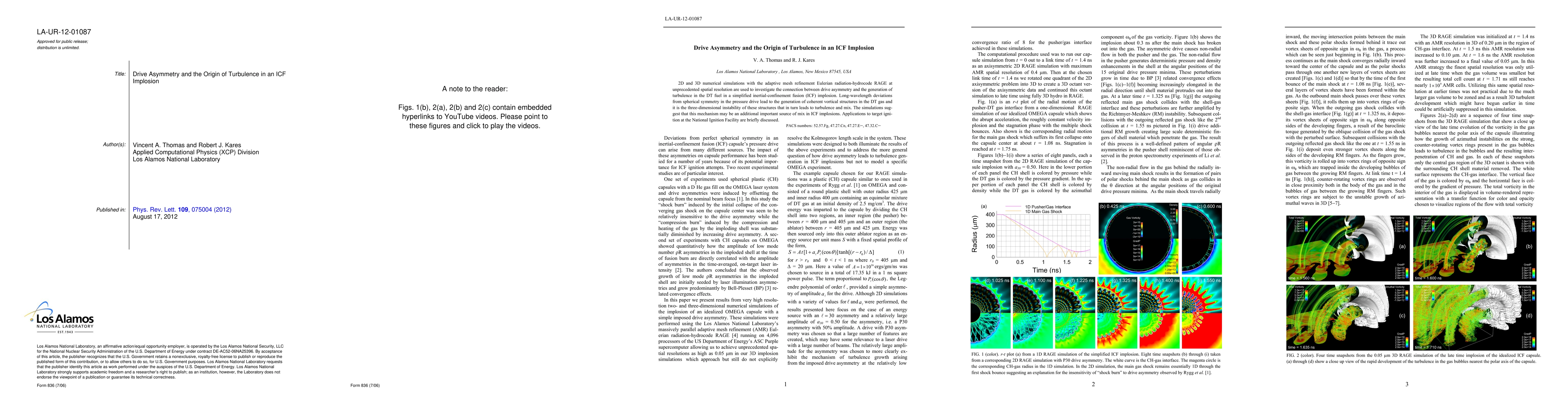 This paper investigates how drive asymmetry in inertial-confinement fusion (ICF) implosions generates turbulence via long-wavelength pressure deviations, leading to coherent vortical structures and three-dimensional instabilities. The findings suggest this mechanism significantly contributes to fuel mixing and has implications for target ignition at the National Ignition Facility.