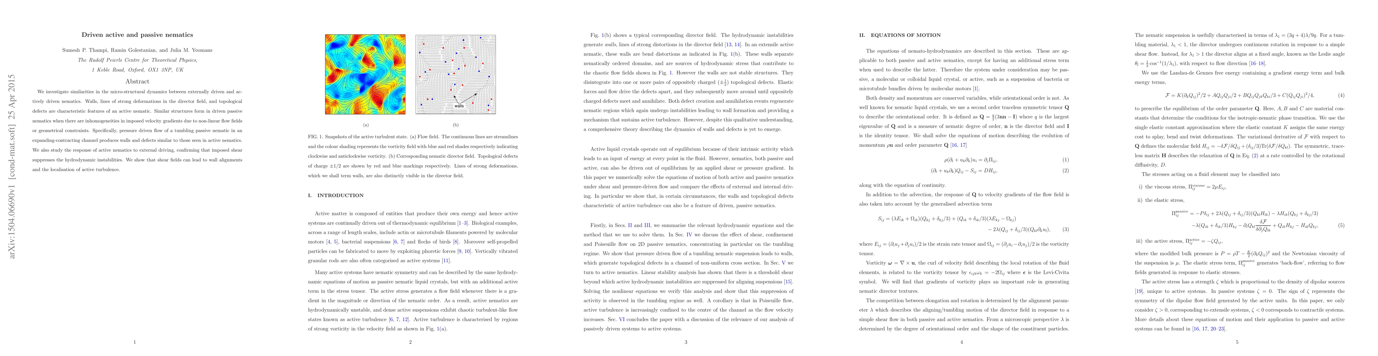 This paper explores the similarities in micro-structural dynamics between actively driven and externally driven nematics, highlighting the formation of walls and topological defects in both types. It finds that passive nematics under pressure-driven flow in non-linear fields mimic active nematic structures, and that external shear can suppress hydrodynamic instabilities and localize active turbulence.