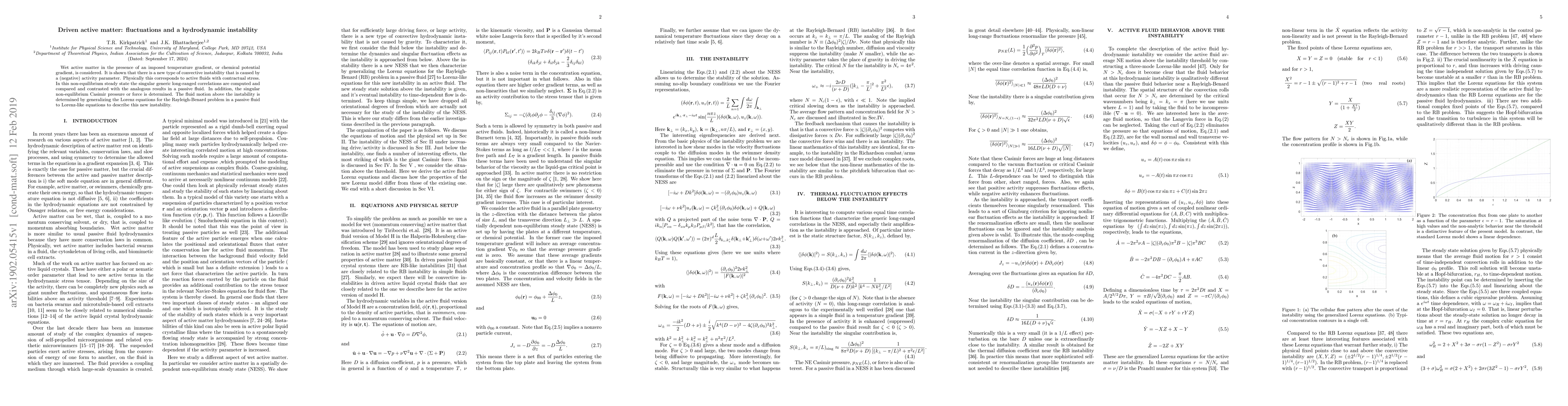 Wet active matter in the presence of an imposed temperature gradient, or chemical potential gradient, is considered. It is shown that there is a new type of convective instability that is caused by a (negative) activity parameter. Physically this corresponds to active fluids with contractual stress. In this non-equilibrium steady state the singular generic long-ranged correlations are computed and compared with the analogous results in a passive fluid. In addition, the singular non-equlibirum Casimir pressure or force is determined. The fluid motion above the instability is determined by generalizing the Lorenz equations for the Rayleigh-Benard instability in a passive fluid to Lorenz-like equations to describe this new instability.