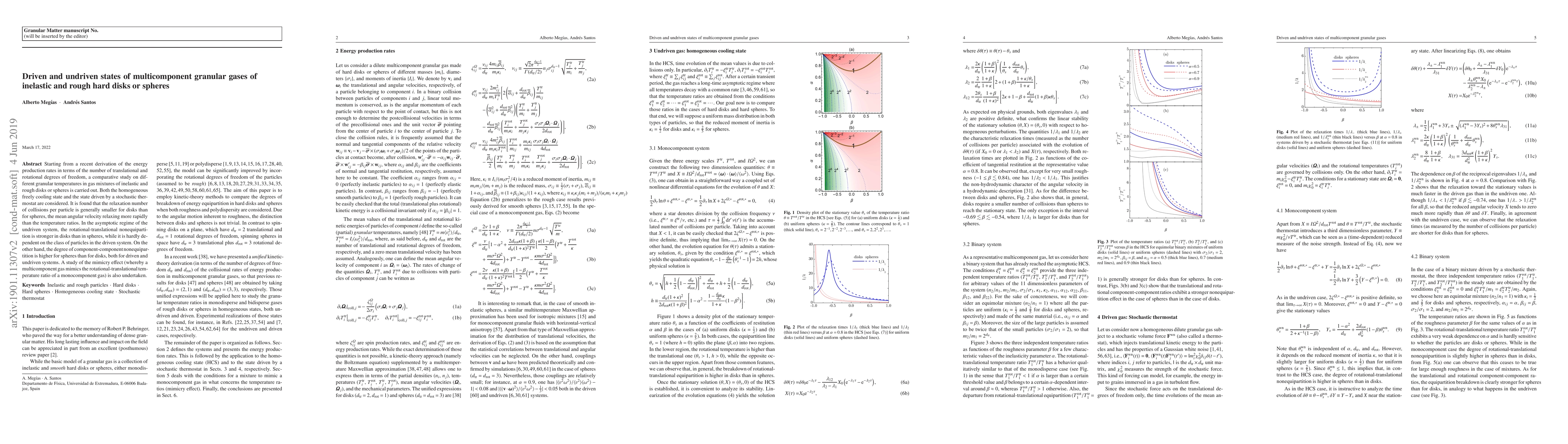 This paper investigates the driven and undriven states of multicomponent granular gases composed of inelastic and rough disks or spheres, comparing granular temperatures and relaxation rates. It finds that disks relax more rapidly in terms of angular velocity and exhibit stronger rotational-translational nonequipartition in undriven states, while spheres show higher component-component nonequipartition in both driven and undriven states.