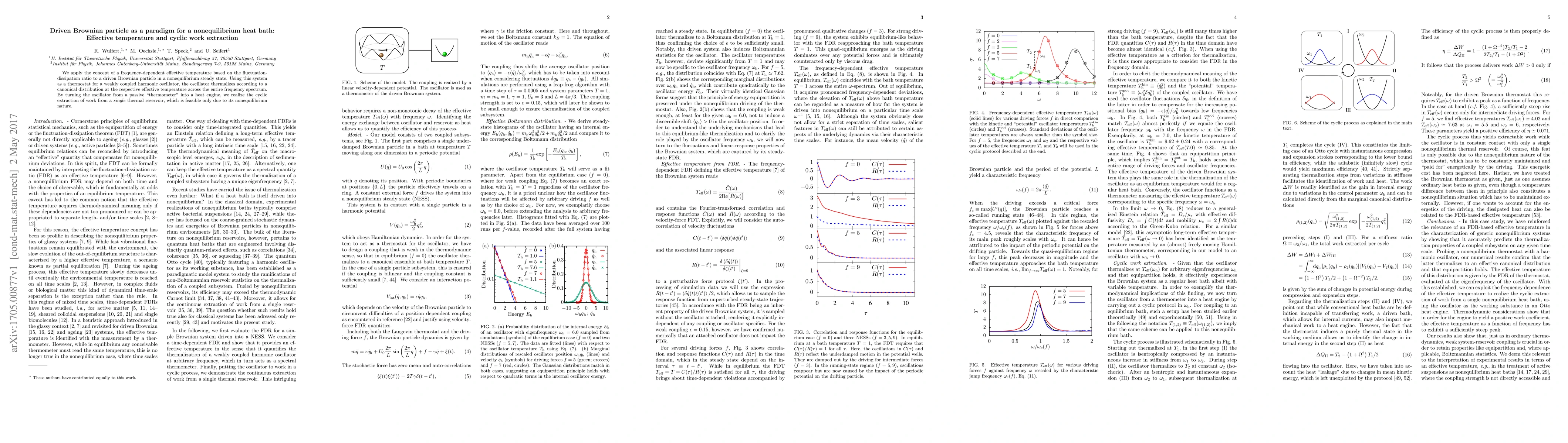 This paper explores a driven Brownian particle as a nonequilibrium heat bath, demonstrating how it can maintain an effective temperature for a coupled harmonic oscillator. The study also shows how cyclic work can be extracted from a single thermal reservoir due to the nonequilibrium nature of the system.