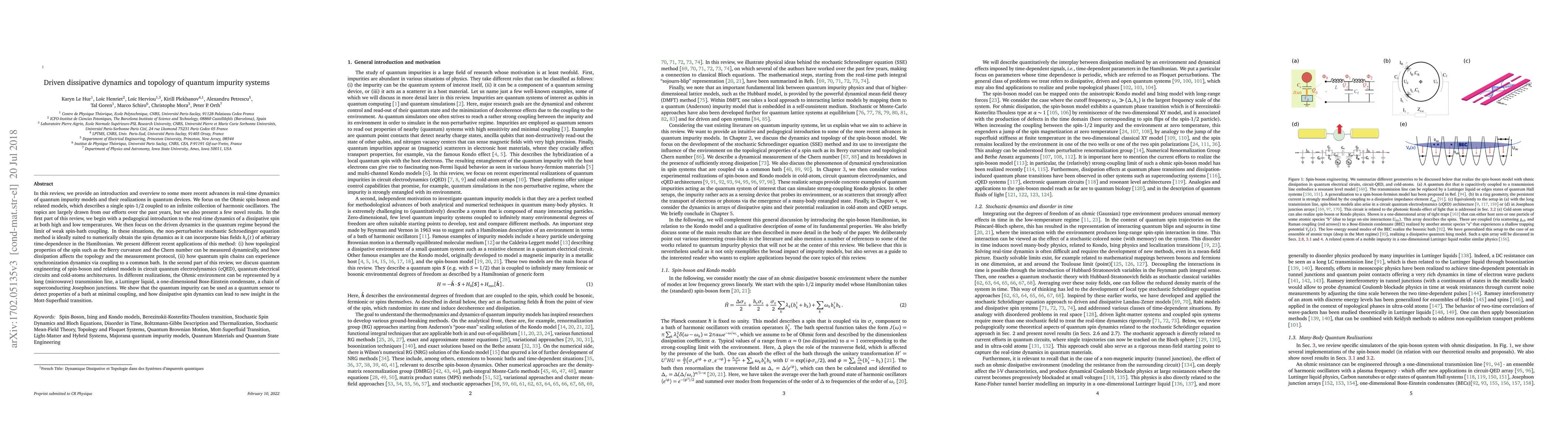 This review explores recent advances in the real-time dynamics of quantum impurity systems, particularly focusing on the Ohmic spin-boson model. It discusses the non-perturbative stochastic Schrödinger equation for driven dynamics, topological properties, and synchronization in quantum spin chains, and reviews quantum engineering implementations in various quantum devices.