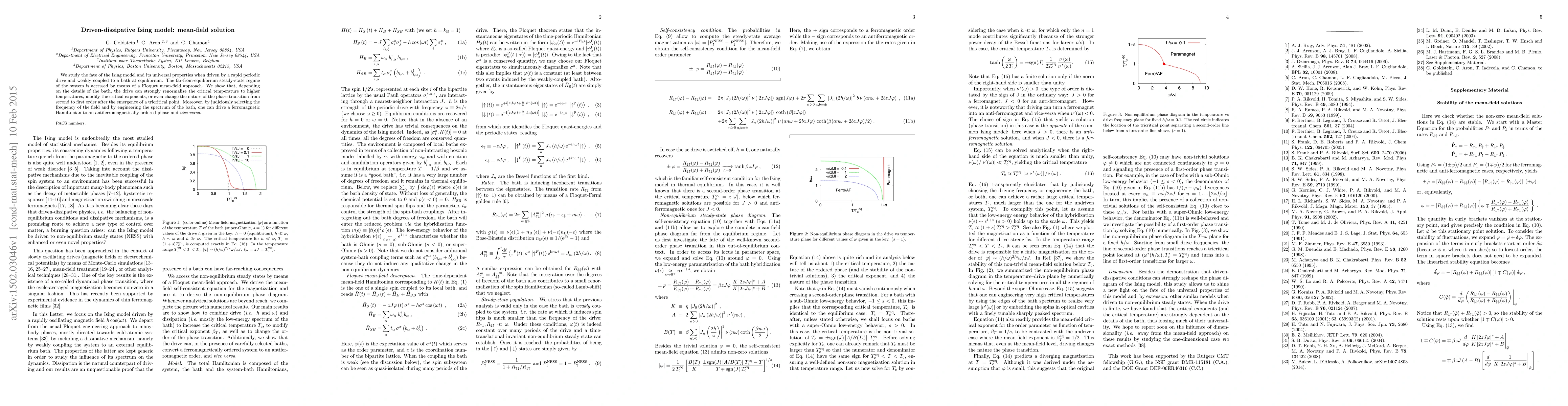 We study the fate of the Ising model and its universal properties when driven by a rapid periodic drive and weakly coupled to a bath at equilibrium. The far from equilibrium steady-state regime of the system is accessed by means of a Floquet mean field approach. We show that, depending on the details of the bath, the drive can strongly renormalize the critical temperature to higher temperatures, modify the critical exponents, or even change the nature of the phase transition from second to first order after the emergence of a tricritical point. Moreover, by judiciously selecting the frequency of the field and by engineering the spectrum of the bath, one can drive a ferromagnetic Hamiltonian to an antiferromagnetically ordered phase and vice-versa.