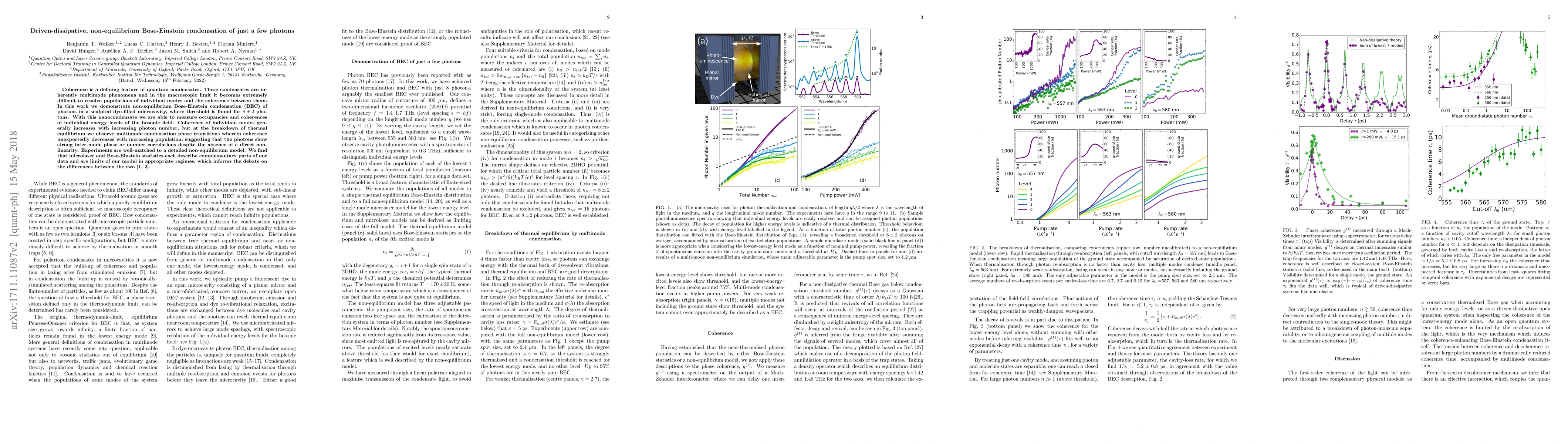 Coherence is a defining feature of quantum condensates. These condensates are inherently multimode phenomena and in the macroscopic limit it becomes extremely difficult to resolve populations of individual modes and the coherence between them. In this work we demonstrate non-equilibrium Bose-Einstein condensation (BEC) of photons in a sculpted dye-filled microcavity, where threshold is found for $8\pm 2$ photons. With this nanocondensate we are able to measure occupancies and coherences of individual energy levels of the bosonic field. Coherence of individual modes generally increases with increasing photon number, but at the breakdown of thermal equilibrium we observe multimode-condensation phase transitions wherein coherence unexpectedly decreases with increasing population, suggesting that the photons show strong inter-mode phase or number correlations despite the absence of a direct nonlinearity. Experiments are well-matched to a detailed non-equilibrium model. We find that microlaser and Bose-Einstein statistics each describe complementary parts of our data and are limits of our model in appropriate regimes, which informs the debate on the differences between the two.