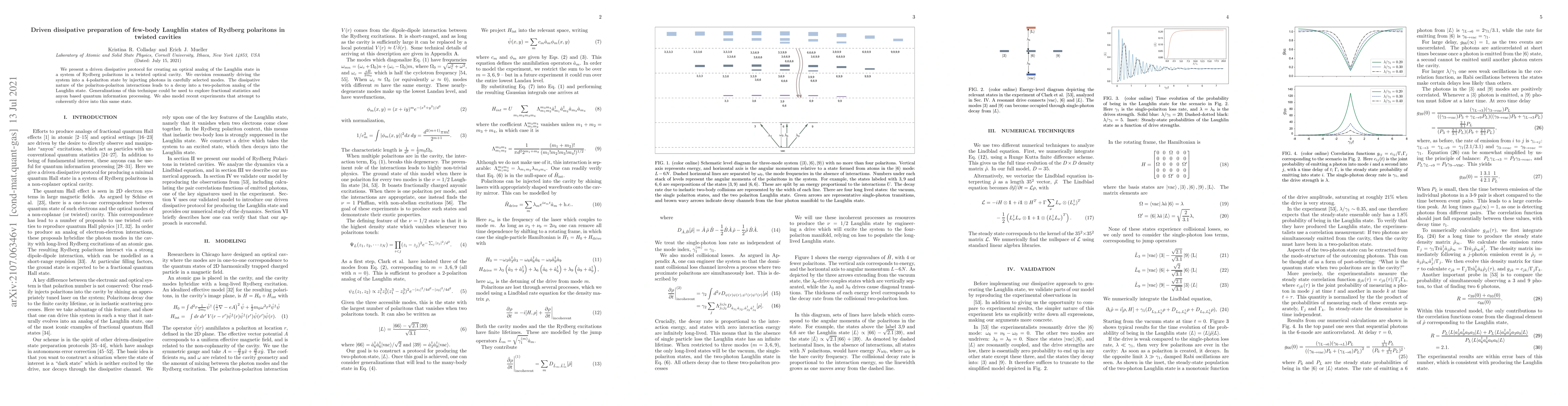 We present a driven dissipative protocol for creating an optical analog of the Laughlin state in a system of Rydberg polaritons in a twisted optical cavity. We envision resonantly driving the system into a 4-polariton state by injecting photons in carefully selected modes. The dissipative nature of the polariton-polariton interactions leads to a decay into a two-polariton analog of the Laughlin state. Generalizations of this technique could be used to explore fractional statistics and anyon based quantum information processing. We also model recent experiments that attempt to coherently drive into this same state.