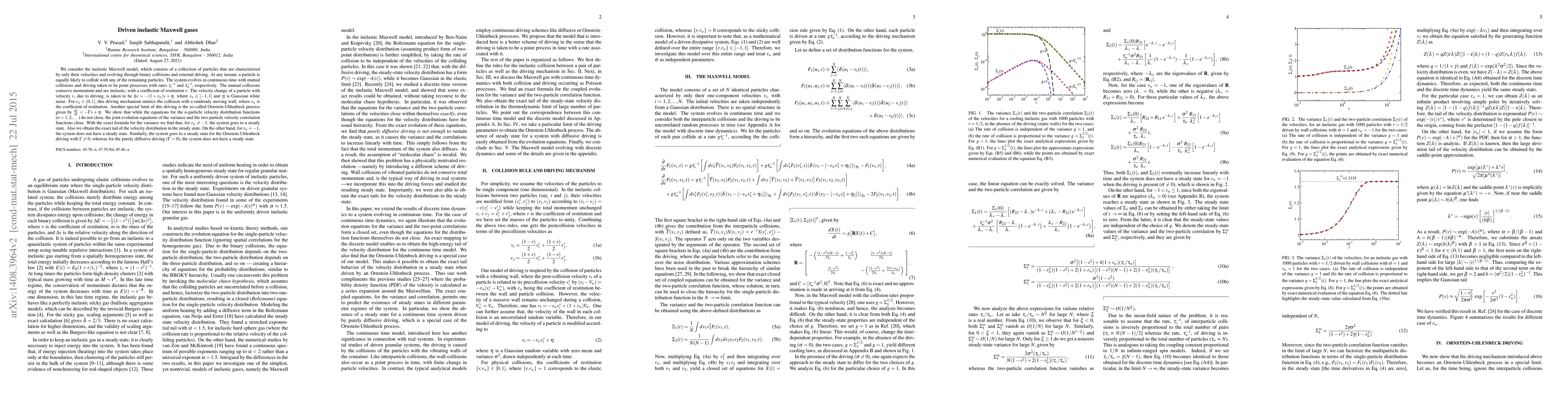 We consider the inelastic Maxwell model, which consists of a collection of particles that are characterized by only their velocities, and evolving through binary collisions and external driving. At any instant, a particle is equally likely to collide with any of the remaining particles. The system evolves in continuous time with mutual collisions and driving taken to be point processes with rates $\tau_c^-{1}$ and $\tau_w^{-1}$ respectively. The mutual collisions conserve momentum and are inelastic, with a coefficient of restitution $r$. The velocity change of a particle with velocity $v$, due to driving, is taken to be $\Delta v=-(1+r_w) v+\eta$, mimicking the collision with a vibrating wall, where $r_w$ the coefficient of restitution of the particle with the "wall" and $\eta$ is Gaussian white noise. The Ornstein-Uhlenbeck driving mechanism given by $\frac{dv}{dt}=-\Gamma v+\eta$ is found to be a special case of the driving modeled as a point process. Using both the continuum and discrete versions we show that while the equations for the one-particle and the two-particle velocity distribution functions do not close, the joint evolution equations of the variance and the two-particle velocity correlation functions close. With the exact formula for the variance we find that, for $r_w\ne-1$, the system goes to a steady state. On the other hand, for $r_w=-1$, the system does not have a steady state. Similarly, the system goes to a steady state for the Ornstein-Uhlenbeck driving with $\Gamma\not=0$, whereas for the purely diffusive driving ($\Gamma=0$), the system does not have a steady state.