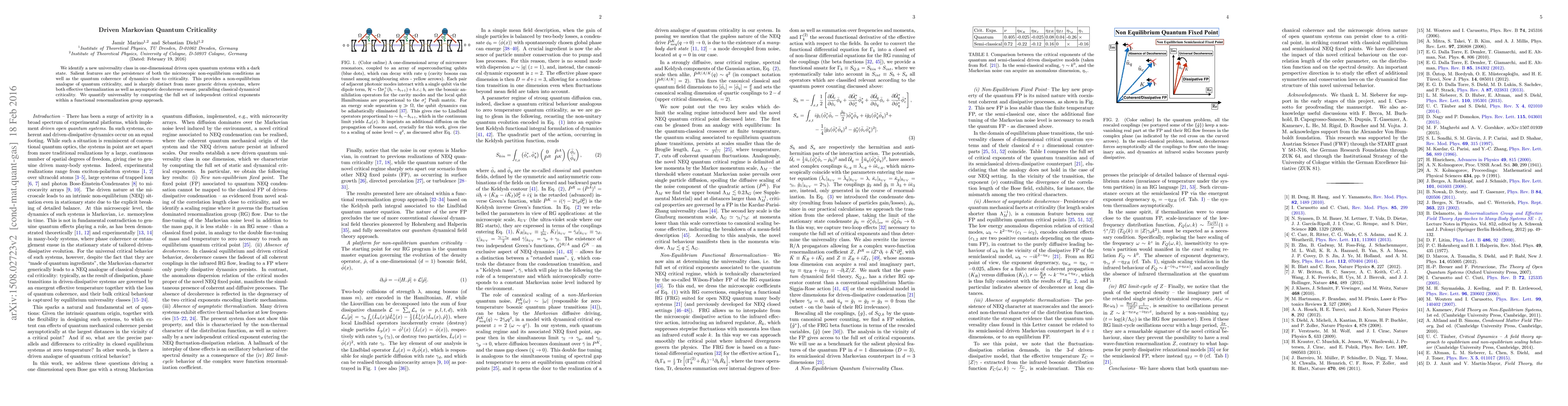 This paper identifies a new universality class in one-dimensional driven open quantum systems featuring a dark state, characterized by persistent non-equilibrium conditions and quantum coherence near criticality. The study quantifies this non-equilibrium quantum criticality using a functional renormalization group approach, distinguishing it from generic driven systems that thermalize and decohere.