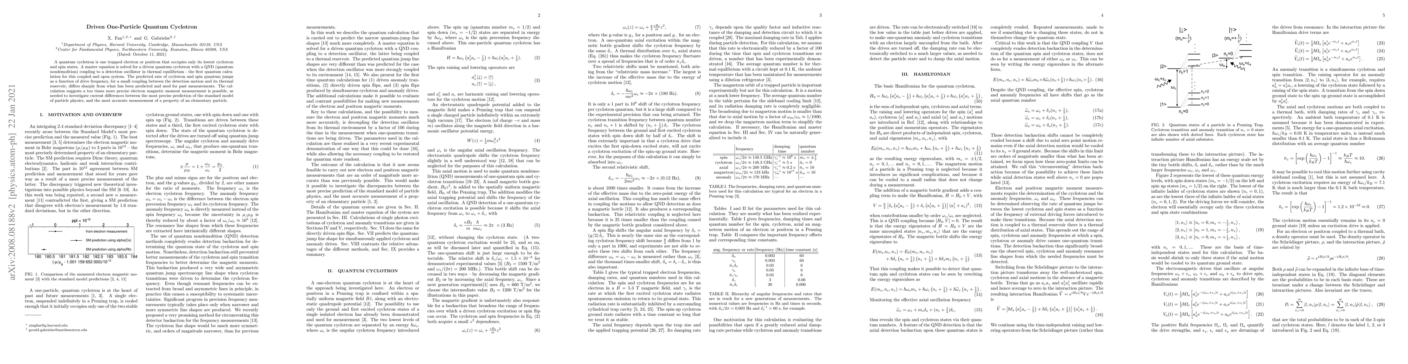 A quantum cyclotron is one trapped electron or positron that occupies only its lowest cyclotron and spin states. A master equation is solved for a driven quantum cyclotron with a QND (quantum nondemolition) coupling to a detection oscillator in thermal equilibrium - the first quantum calculation for this coupled and open system. The predicted rate of cyclotron and spin quantum jumps as a function of drive frequency, for a small coupling between the detection motion and its thermal reservoir, differs sharply from what has been predicted and used for past measurements. The calculation suggests a ten times more precise electron magnetic moment measurement is possible, as needed to investigate current differences between the most precise prediction of the standard model of particle physics, and the most accurate measurement of a property of an elementary particle.