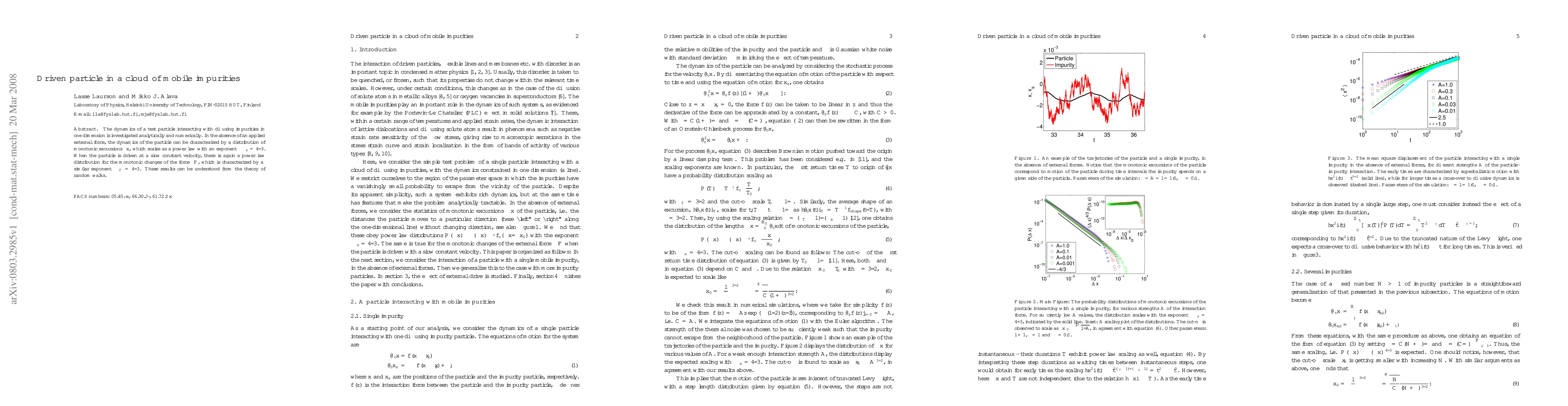 The dynamics of a test particle interacting with diffusing impurities in one dimension is investigated analytically and numerically. In the absence of an applied external force, the dynamics of the particle can be characterized by a distribution of monotonic excursions $\Delta x$, which scales as a power law with an exponent $\tau_{\Delta x} = 4/3$. When the particle is driven at a slow constant velocity, there is again a power law distribution for the monotonic changes of the force $\Delta F$, which is characterized by a similar exponent $\tau_{\Delta F}=4/3$. These results can be understood from the theory of random walks.