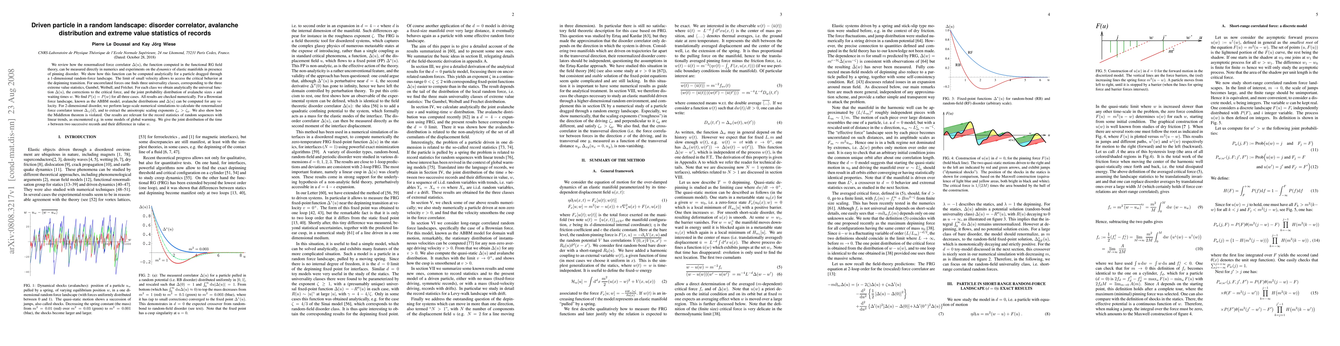 Researchers studied how a particle behaves in a random landscape with disorder, finding three universality classes and extreme value statistics for record distributions, and providing insights into avalanche sizes and waiting times.