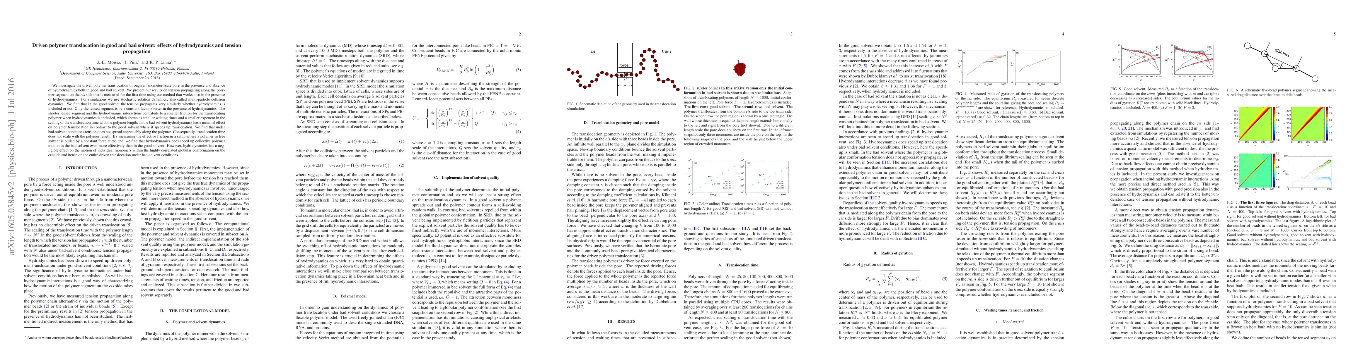 We investigate the driven polymer translocation through a nanometer-scale pore in the presence and absence of hydrodynamics both in good and bad solvent. We present our results on tension propagating along the polymer segment on the cis-side that is measured for the first time using our method that works also in the presence of hydrodynamics. For simulations we use stochastic rotation dynamics, also called multi-particle collision dynamics. We find that in the good solvent the tension propagates very similarly whether hydrodynamics is included or not. Only the tensed segment is by a constant factor shorter in the presence of hydrodynamics. The shorter tensed segment and the hydrodynamic interactions contribute to a smaller friction for the translocating polymer when hydrodynamics is included, which shows as smaller waiting times and a smaller exponent in the scaling of the translocation time with the polymer length. In the bad solvent hydrodynamics has a minimal effect on polymer translocation in contrast to the good solvent where it speeds up translocation. We find that under bad-solvent conditions tension does not spread appreciably along the polymer. Consequently, translocation time does not scale with the polymer length. By measuring the effective friction in a setup where a polymer in free solvent is pulled by a constant force at the end, we find that hydrodynamics does speed up collective polymer motion in the bad solvent even more effectively than in the good solvent. However, hydrodynamics has a negligible effect on the motion of individual monomers within the highly correlated globular conformation on the cis-side and hence on the entire driven translocation under bad-solvent conditions.