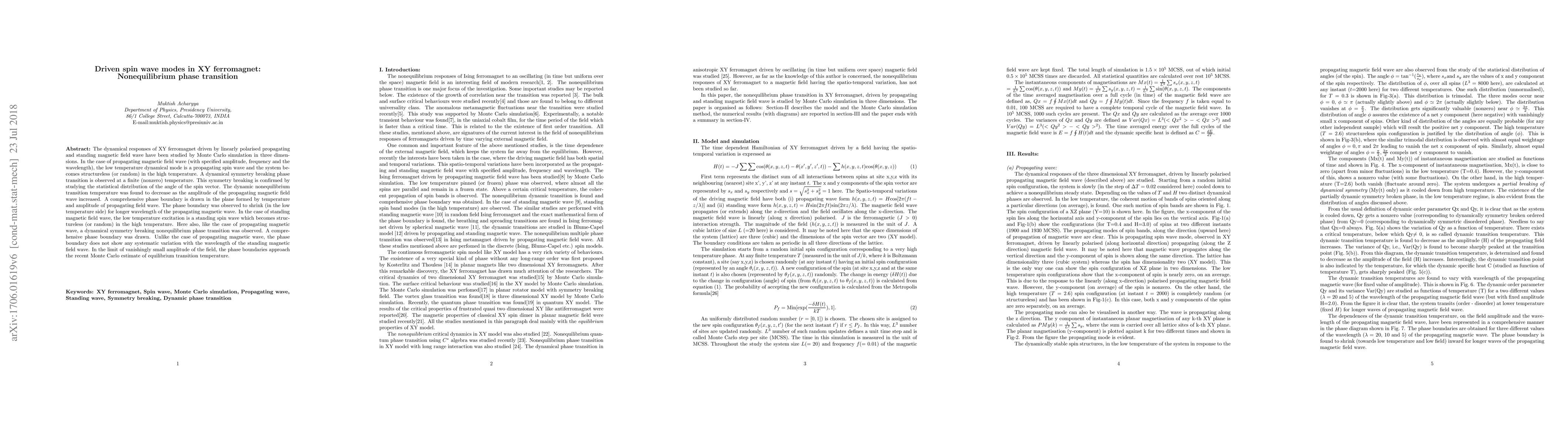 This research investigates the dynamical responses of XY ferromagnets under driven magnetic field waves, revealing nonequilibrium phase transitions. Monte Carlo simulations show that both propagating and standing magnetic field waves induce symmetry breaking transitions, with phase boundaries shrinking with increasing wave amplitude and varying with wavelength.