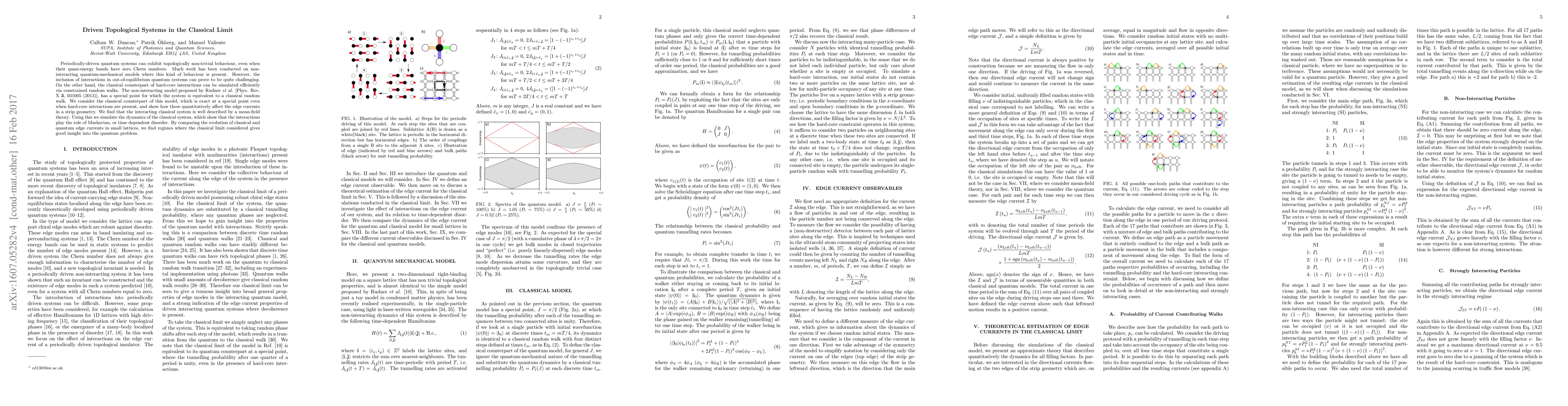 Periodically-driven quantum systems can exhibit topologically non-trivial behaviour, even when their quasi-energy bands have zero Chern numbers. Much work has been conducted on non-interacting quantum-mechanical models where this kind of behaviour is present. However, the inclusion of interactions in out-of-equilibrium quantum systems can prove to be quite challenging. On the other hand, the classical counterpart of hard-core interactions can be simulated efficiently via constrained random walks. The non-interacting model proposed by Rudner et al. [Phys. Rev. X 3, 031005 (2013)], has a special point for which the system is equivalent to a classical random walk. We consider the classical counterpart of this model, which is exact at a special point even when hard-core interactions are present, and show how these quantitatively affect the edge currents in a strip geometry. We find that the interacting classical system is well described by a mean-field theory. Using this we simulate the dynamics of the classical system, which show that the interactions play the role of Markovian, or time dependent disorder. By comparing the evolution of classical and quantum edge currents in small lattices, we find regimes where the classical limit considered gives good insight into the quantum problem.