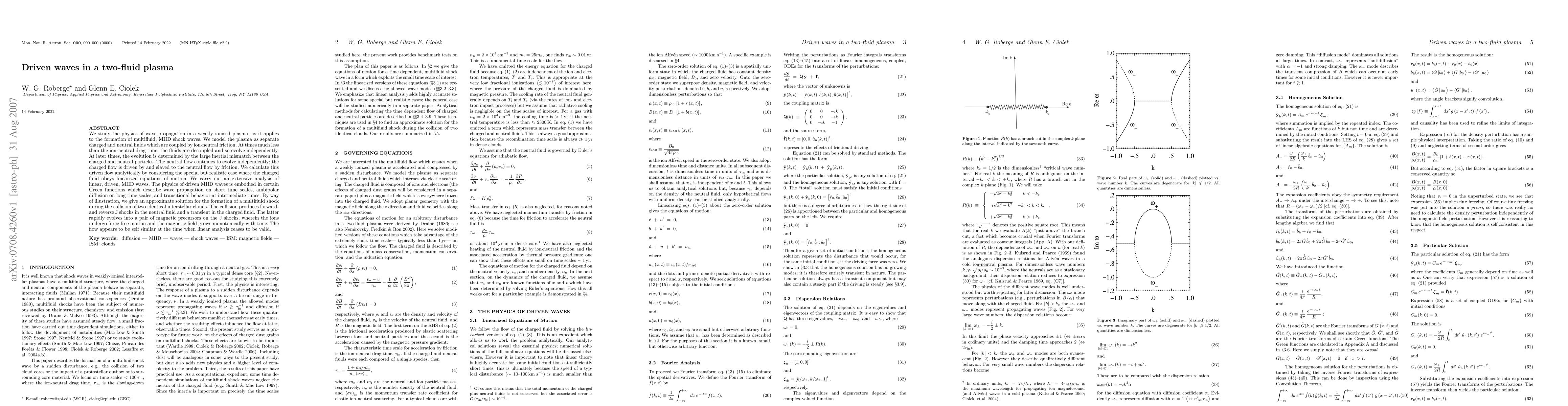 Researchers studied driven waves in a two-fluid plasma, finding that charged particles move slowly due to friction with neutral particles, creating complex wave patterns in the plasma.