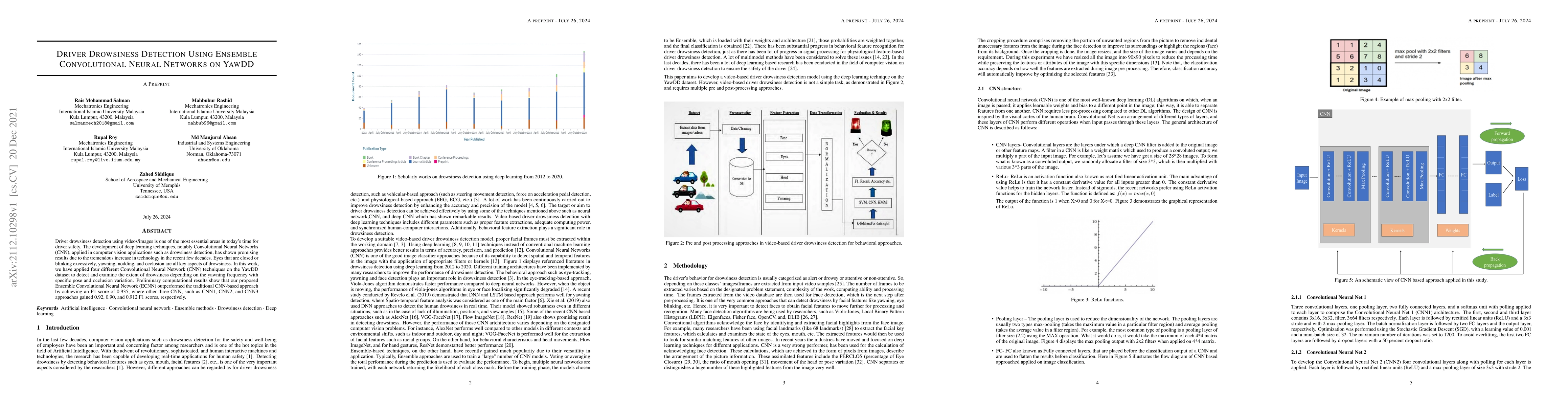 This paper proposes an Ensemble Convolutional Neural Network (ECNN) for detecting driver drowsiness using the YawDD dataset, focusing on yawning frequency. The ECNN outperforms traditional CNN methods, achieving an F1 score of 0.935 compared to 0.92, 0.90, and 0.912 for CNN1, CNN2, and CNN3 respectively.