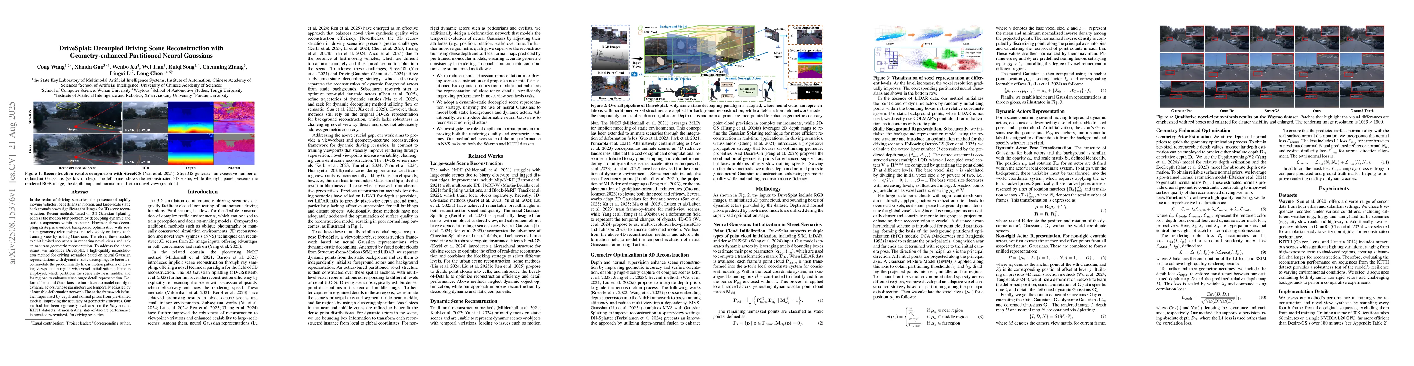 In the realm of driving scenarios, the presence of rapidly moving vehicles, pedestrians in motion, and large-scale static backgrounds poses significant challenges for 3D scene reconstruction. Recent methods based on 3D Gaussian Splatting address the motion blur problem by decoupling dynamic and static components within the scene. However, these decoupling strategies overlook background optimization with adequate geometry relationships and rely solely on fitting each training view by adding Gaussians. Therefore, these models exhibit limited robustness in rendering novel views and lack an accurate geometric representation. To address the above issues, we introduce DriveSplat, a high-quality reconstruction method for driving scenarios based on neural Gaussian representations with dynamic-static decoupling. To better accommodate the predominantly linear motion patterns of driving viewpoints, a region-wise voxel initialization scheme is employed, which partitions the scene into near, middle, and far regions to enhance close-range detail representation. Deformable neural Gaussians are introduced to model non-rigid dynamic actors, whose parameters are temporally adjusted by a learnable deformation network. The entire framework is further supervised by depth and normal priors from pre-trained models, improving the accuracy of geometric structures. Our method has been rigorously evaluated on the Waymo and KITTI datasets, demonstrating state-of-the-art performance in novel-view synthesis for driving scenarios.