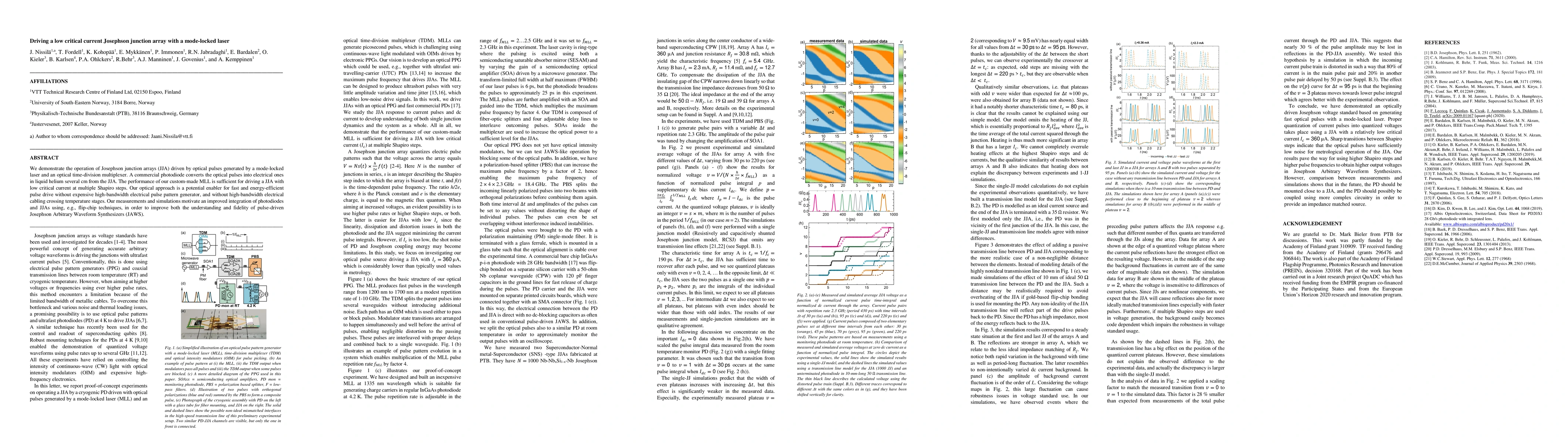 This paper demonstrates the operation of Josephson junction arrays driven by optical pulses from a mode-locked laser, converting these pulses into electrical signals via a photodiode. The method offers a fast, energy-efficient alternative to traditional high-bandwidth electrical pulse generators, potentially improving Josephson Arbitrary Waveform Synthesizers.