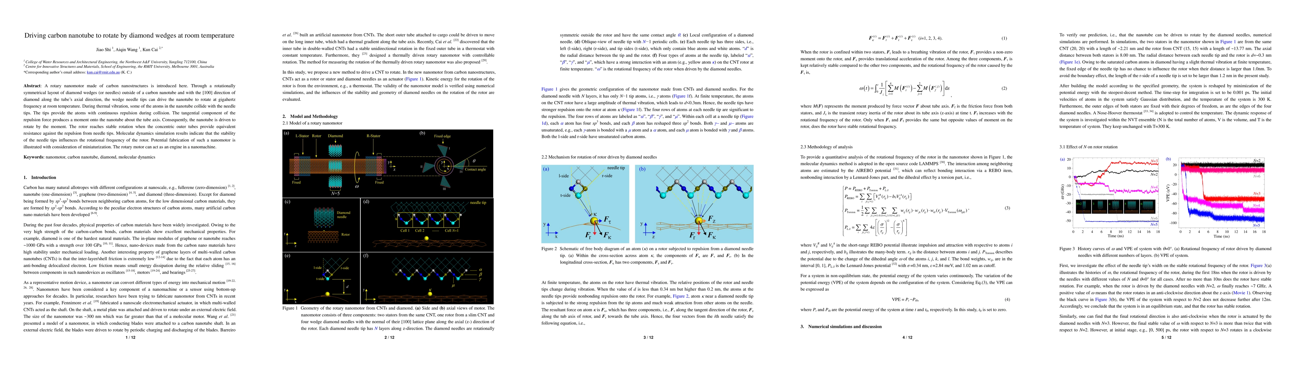 This paper introduces a rotary nanomotor composed of carbon nanotubes driven by diamond wedges, achieving rotation at gigahertz frequency at room temperature. The wedge tips provide continuous repulsion to the nanotube atoms, generating a rotational moment, enabling stable rotation when resistance balances.