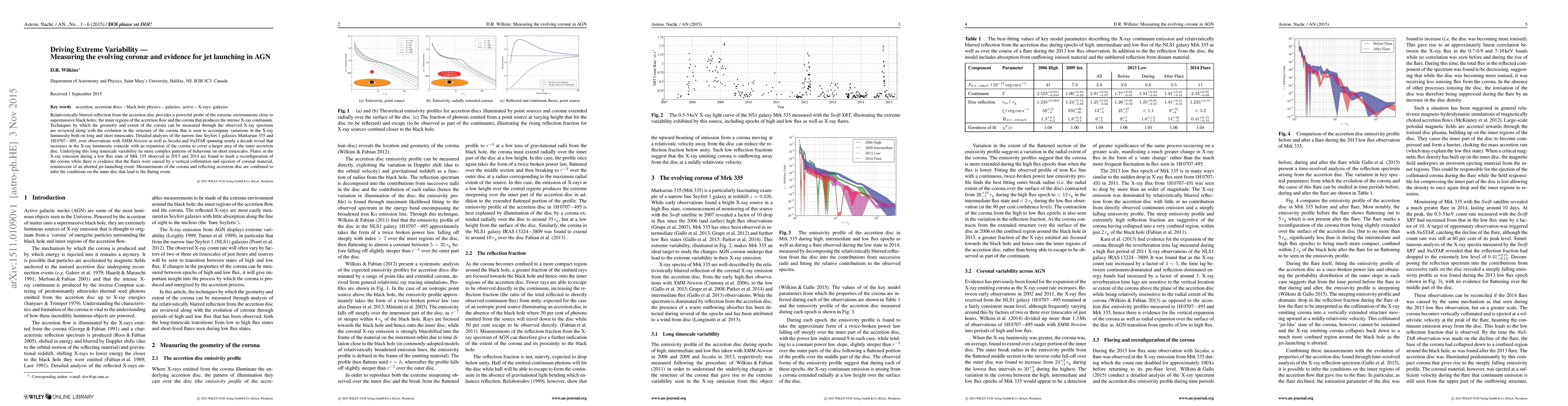 Relativistically blurred reflection from the accretion disc provides a powerful probe of the extreme environments close to supermassive black holes; the inner regions of the accretion flow and the corona that produces the intense X-ray continuum. Techniques by which the geometry and extent of the corona can be measured through the observed X-ray spectrum are reviewed along with the evolution in the structure of the corona that is seen to accompany variations in the X-ray luminosity both on long and short timescales. Detailed analyses of the narrow line Seyfert 1 galaxies Markarian 335 and 1H0707-495, over observations with XMM-Newton as well as Suzaku and NuSTAR spanning nearly a decade reveal that increases in the X-ray luminosity coincide with an expansion of the corona to cover a larger area of the inner accretion disc. Underlying this long timescale variability lie more complex patterns of behaviour on short timescales. Flares in the X-ray emission during a low flux state of Mrk 335 observed in 2013 and 2014 are found to mark a reconfiguration of the corona while there is evidence that the flares were caused by a vertical collimation and ejection of coronal material, reminiscent of an aborted jet-launching event. Measurements of the corona and reflecting accretion disc are combined to infer the conditions on the inner disc that lead to the flaring event.