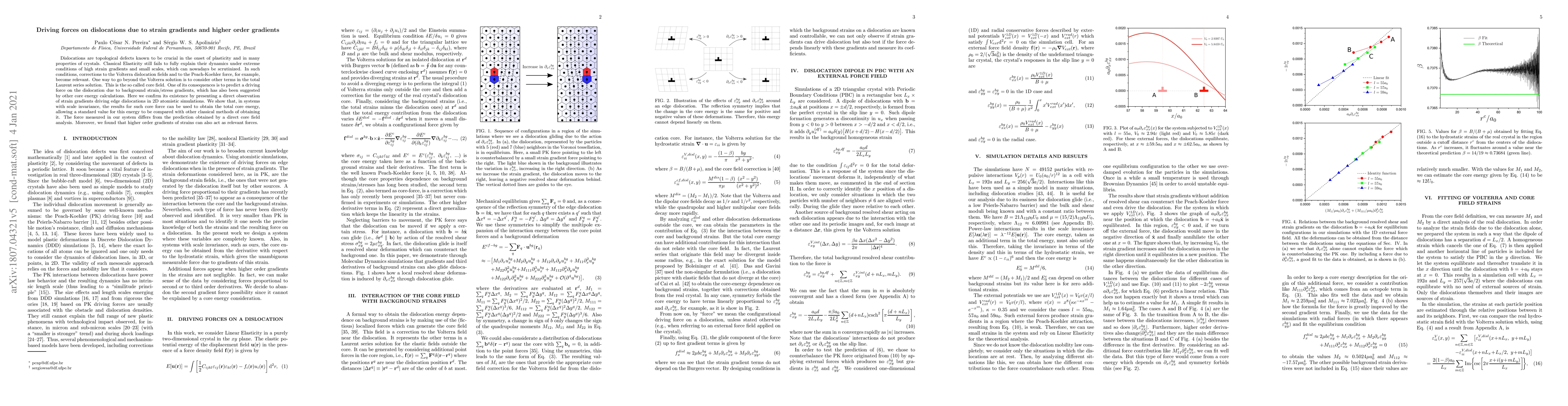 Dislocations are topological defects known to be crucial in the onset of plasticity and in many properties of crystals. Classical Elasticity still fails to fully explain their dynamics under extreme conditions of high strain gradients and small scales, which can nowadays be scrutinized. In such conditions, corrections to the Volterra dislocation fields and to the Peach-Koehler force, for example, become relevant. One way to go beyond the Volterra solution is to consider other terms in the total Laurent series solution. This is the so called core field. One of its consequences is to predict a driving force on the dislocation due to background strain/stress gradients, which has also been suggested by other core energy calculations. Here we confirm its existence by presenting a direct observation of strain gradients driving edge dislocations in 2D atomistic simulations. We show that, in systems with scale invariance, the results for such core force can be used to obtain the total core energy, allowing a standard value for this energy to be compared with other classical methods of obtaining it. The force measured in our system differs from the prediction obtained by a direct core field analysis. Moreover, we found that higher order gradients of strains can also act as relevant forces.