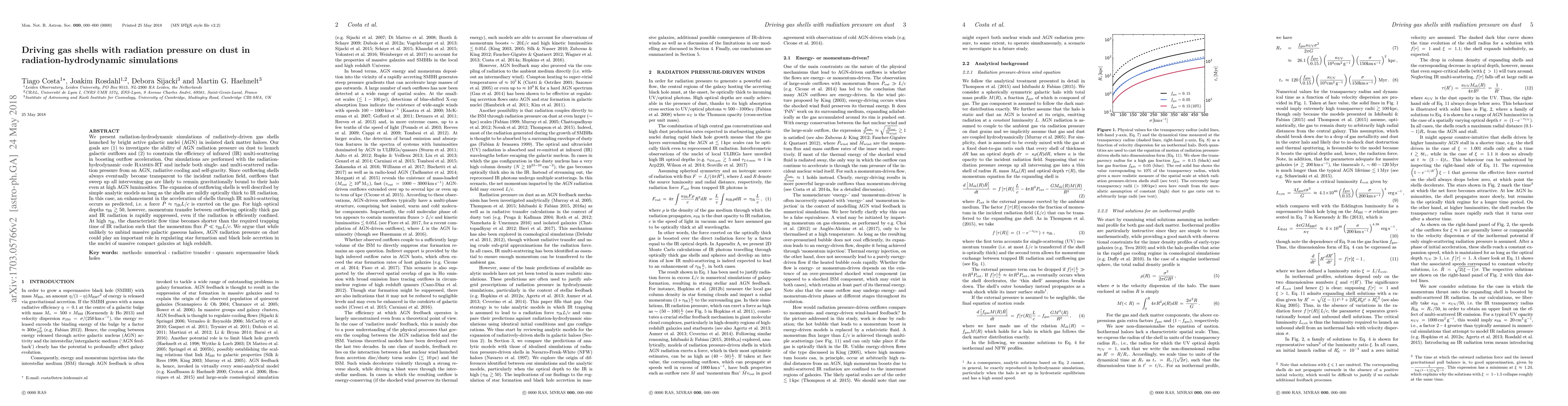 This paper investigates radiation-hydrodynamic simulations of gas shells driven by AGN radiation pressure on dust, finding that while IR multi-scattering boosts outflow acceleration, high optical depths suppress momentum transfer, suggesting AGN radiation's role in regulating star formation and black hole accretion in massive galaxies.