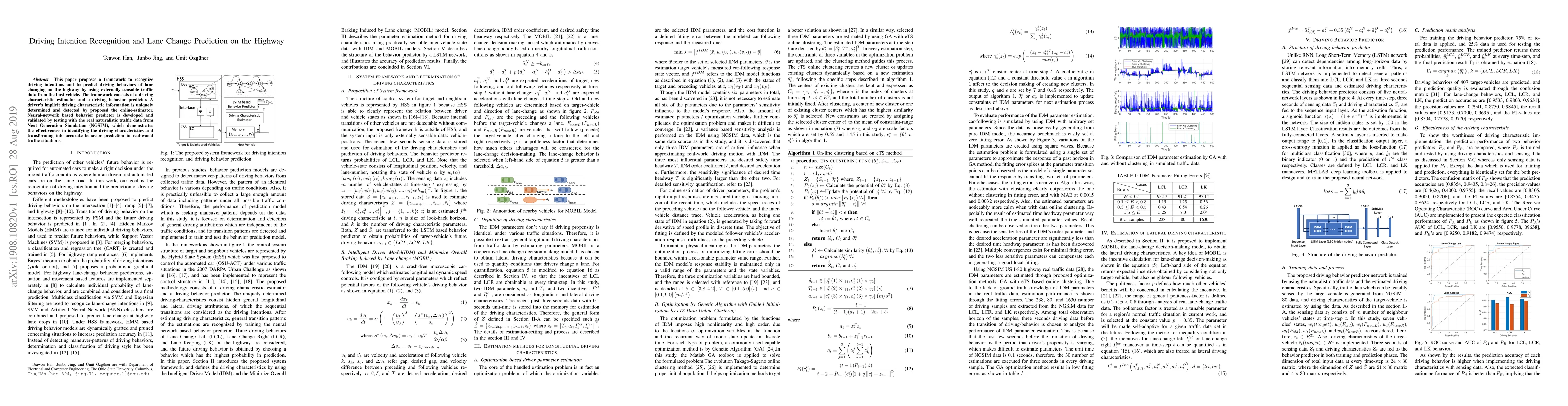 This paper proposes a framework to recognize driving intentions and to predict driving behaviors of lane changing on the highway by using externally sensable traffic data from the host-vehicle. The framework consists of a driving characteristic estimator and a driving behavior predictor. A driver's implicit driving characteristic information is uniquely determined and detected by proposed the online-estimator. Neural-network based behavior predictor is developed and validated by testing with the real naturalistic traffic data from Next Generation Simulation (NGSIM), which demonstrates the effectiveness in identifying the driving characteristics and transforming into accurate behavior prediction in real-world traffic situations.