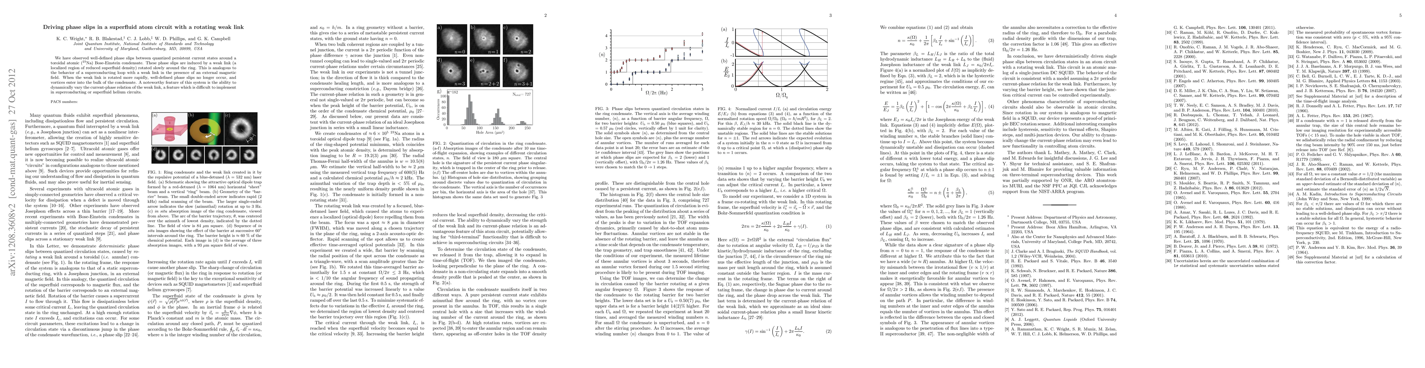 This paper observes phase slips in a superfluid atomic circuit by rotating a weak link, analogous to superconducting loops with magnetic fields. Rapid rotation disrupts phase slips, introducing bulk vortices, while the unique feature allows dynamic adjustment of the weak link and critical current.