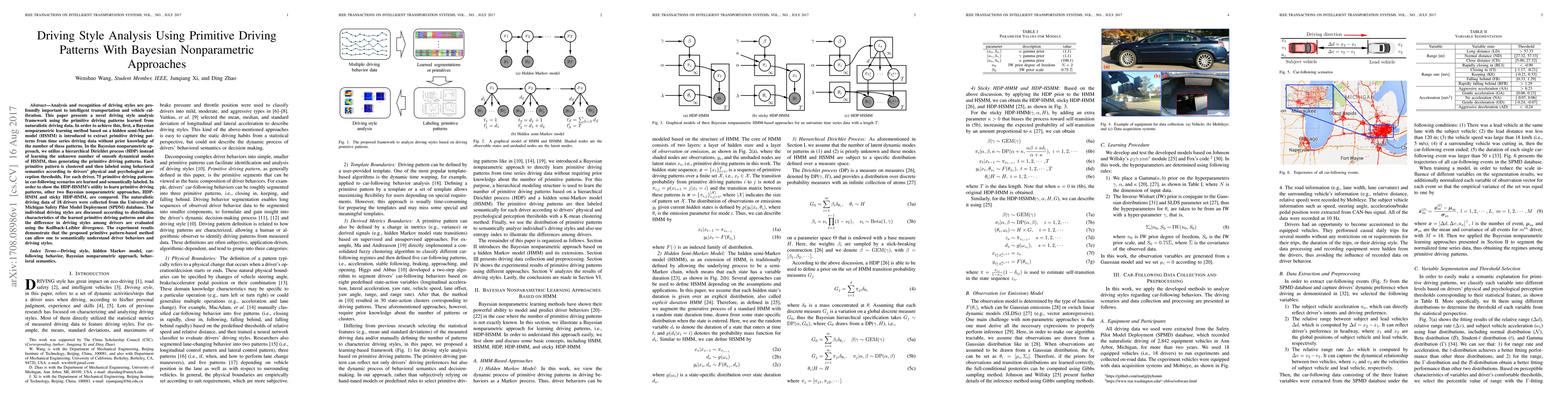 This paper introduces a Bayesian nonparametric framework using hidden semi-Markov models and hierarchical Dirichlet processes to analyze and recognize individual driving styles from naturalistic driving data. The method extracts and semantically labels 75 primitive driving patterns, demonstrating its utility in understanding driver behaviors and differences between drivers.