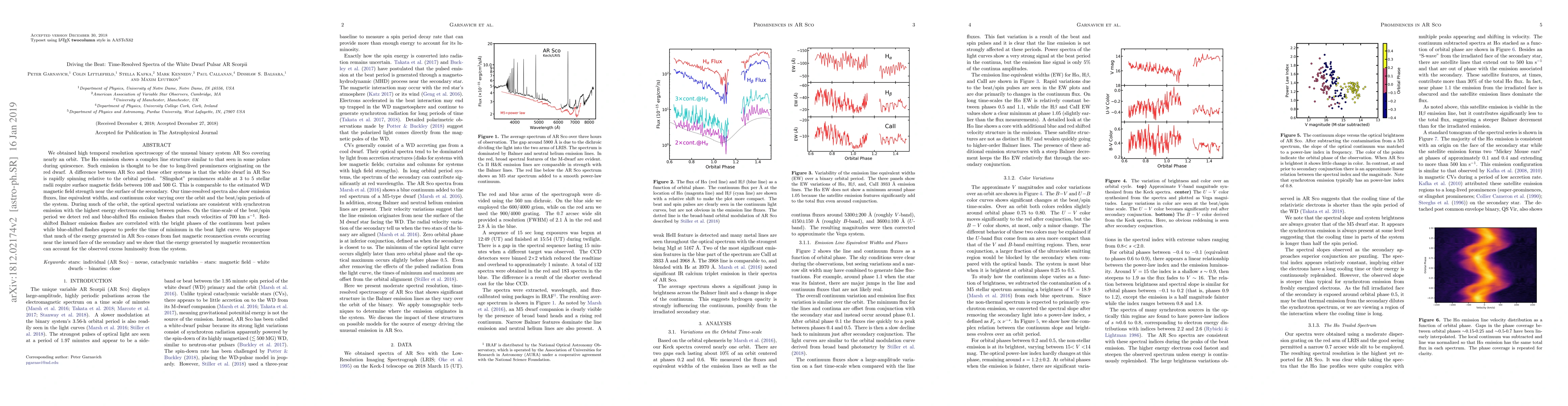 The study of AR Scorpii, a unique binary system, reveals complex H$alpha$ emission linked to 'slingshot' prominences from a red dwarf, stable at 3-5 stellar radii, due to a rapidly spinning white dwarf. Time-resolved spectra show optical variations consistent with synchrotron emission, and red/blue-shifted H$alpha$ emission flashes reaching 700 km/s, correlated with continuum beat pulses. The research suggests that magnetic reconnection near the secondary's inner face generates the system's excess luminosity.