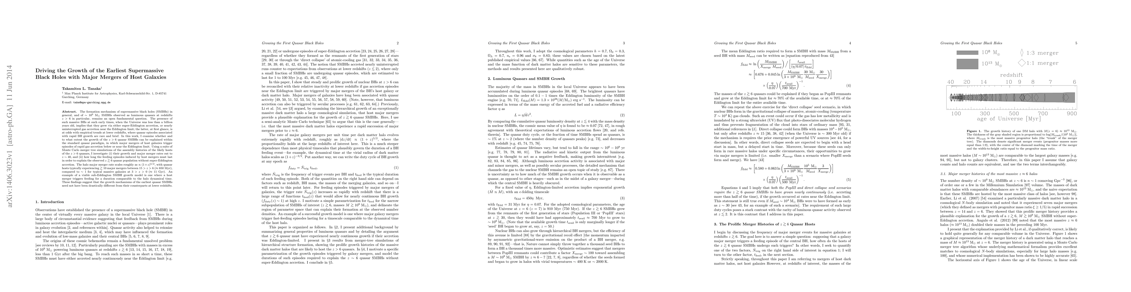 This paper explores the growth of supermassive black holes (SMBHs) in quasars at redshifts $z>6$ through major galaxy mergers, suggesting that these early SMBHs may have grown via prolonged gas accretion near the Eddington limit, similar to lower redshift quasars, rather than through super-Eddington accretion. The study uses Monte Carlo simulations to show that quasar hosts likely experienced multiple major mergers, which could sustain the necessary accretion periods.