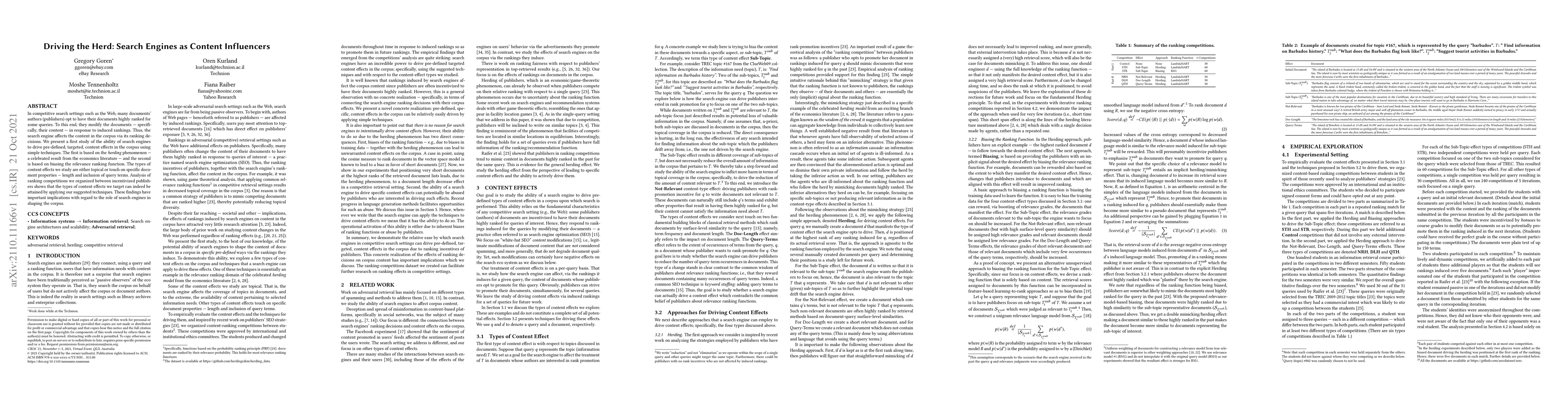 This paper investigates how search engines can influence document content through ranking decisions, using techniques based on herding and relevance ranking bias. Experiments with incentivized publishers demonstrate that targeted content effects, such as changes in topic or document properties, can be achieved, highlighting search engines' role in shaping the web corpus.