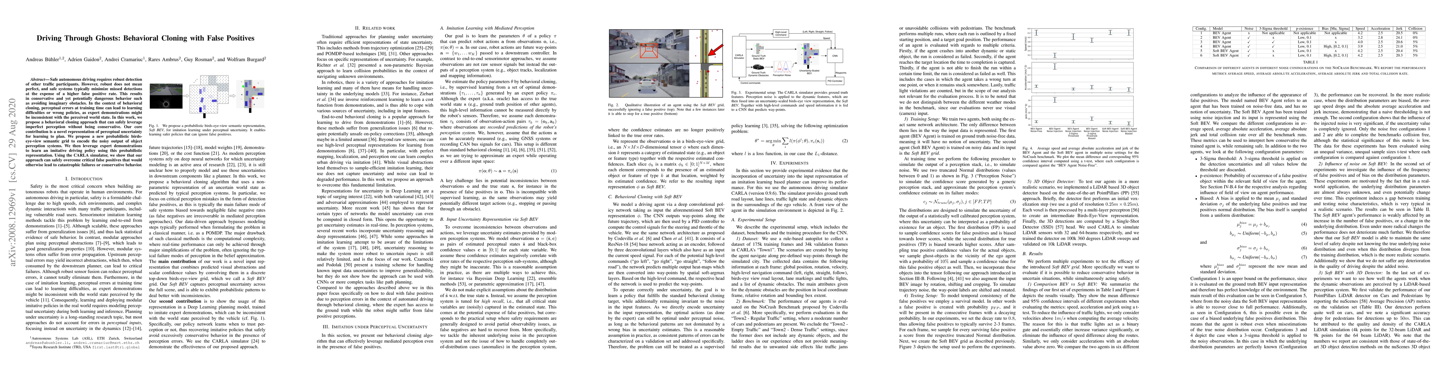 This paper proposes a behavioral cloning method to address perceptual errors in autonomous driving, using a probabilistic semantic grid to represent uncertain object detections. The approach aims to safely leverage imperfect perception, avoiding conservative behaviors, and is demonstrated to be effective in the CARLA simulator.