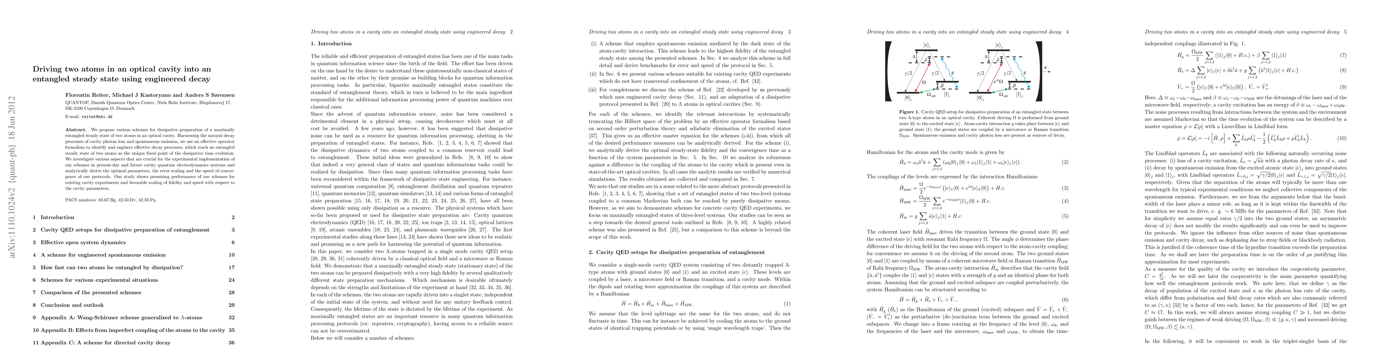 This paper proposes schemes for creating a maximally entangled steady state of two atoms in an optical cavity using engineered decay processes. It identifies optimal parameters and analyzes the error scaling and convergence speed, showing promising results for current and future cavity quantum electrodynamics experiments.