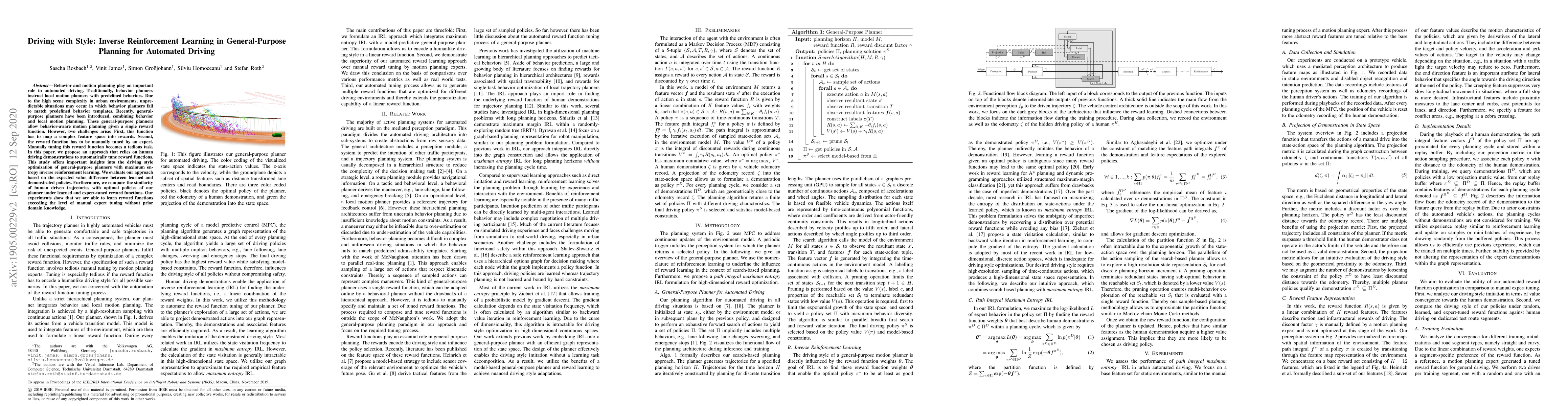 This paper proposes an inverse reinforcement learning approach to automatically tune reward functions for general-purpose planners in automated driving, using human driving demonstrations. The method achieves better performance than manually tuned reward functions, demonstrating improved driving style optimization.