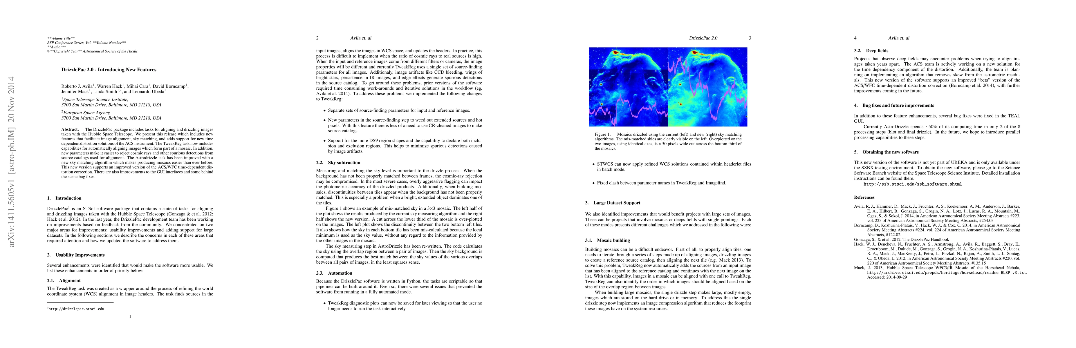 The DrizzlePac package includes tasks for aligning and drizzling images taken with the Hubble Space Telescope. We present this release which includes new features that facilitate image alignment, sky matching, and adds support for new time dependent distortion solutions of the ACS instrument. The TweakReg task now includes capabilities for automatically aligning images which form part of a mosaic. In addition, new parameters make it easier to reject cosmic rays and other spurious detections from source catalogs used for alignment. The Astrodrizzle task has been improved with a new sky matching algorithm which makes producing mosaics easier than ever before. This new version supports an improved version of the ACS/WFC time-dependent distortion correction. There are also improvements to the GUI interfaces and some behind the scene bug fixes.