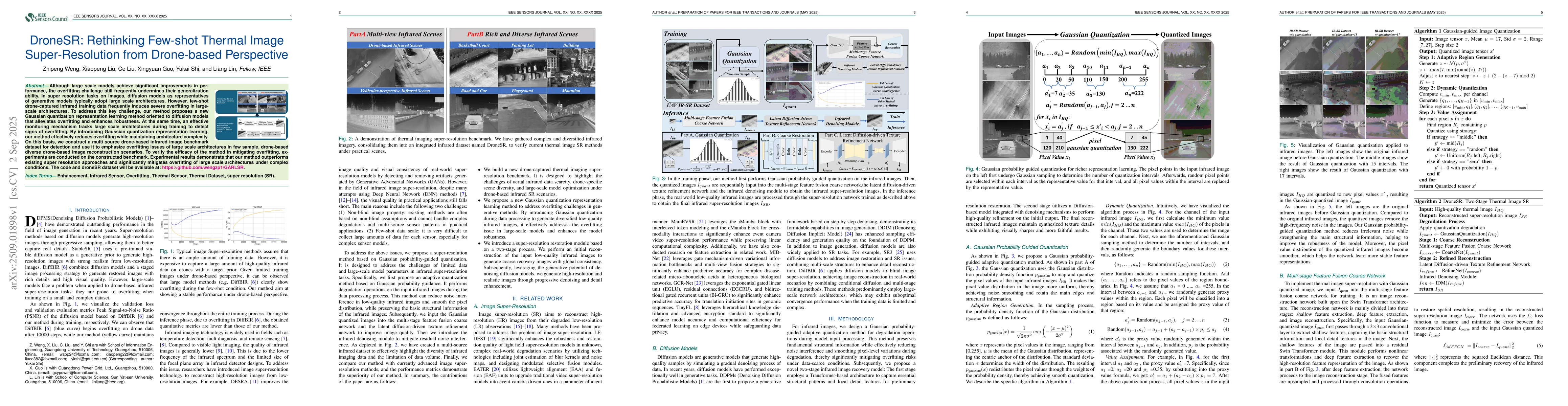 Although large scale models achieve significant improvements in performance, the overfitting challenge still frequently undermines their generalization ability. In super resolution tasks on images, diffusion models as representatives of generative models typically adopt large scale architectures. However, few-shot drone-captured infrared training data frequently induces severe overfitting in large-scale architectures. To address this key challenge, our method proposes a new Gaussian quantization representation learning method oriented to diffusion models that alleviates overfitting and enhances robustness. At the same time, an effective monitoring mechanism tracks large scale architectures during training to detect signs of overfitting. By introducing Gaussian quantization representation learning, our method effectively reduces overfitting while maintaining architecture complexity. On this basis, we construct a multi source drone-based infrared image benchmark dataset for detection and use it to emphasize overfitting issues of large scale architectures in few sample, drone-based diverse drone-based image reconstruction scenarios. To verify the efficacy of the method in mitigating overfitting, experiments are conducted on the constructed benchmark. Experimental results demonstrate that our method outperforms existing super resolution approaches and significantly mitigates overfitting of large scale architectures under complex conditions. The code and DroneSR dataset will be available at: https://github.com/wengzp1/GARLSR.