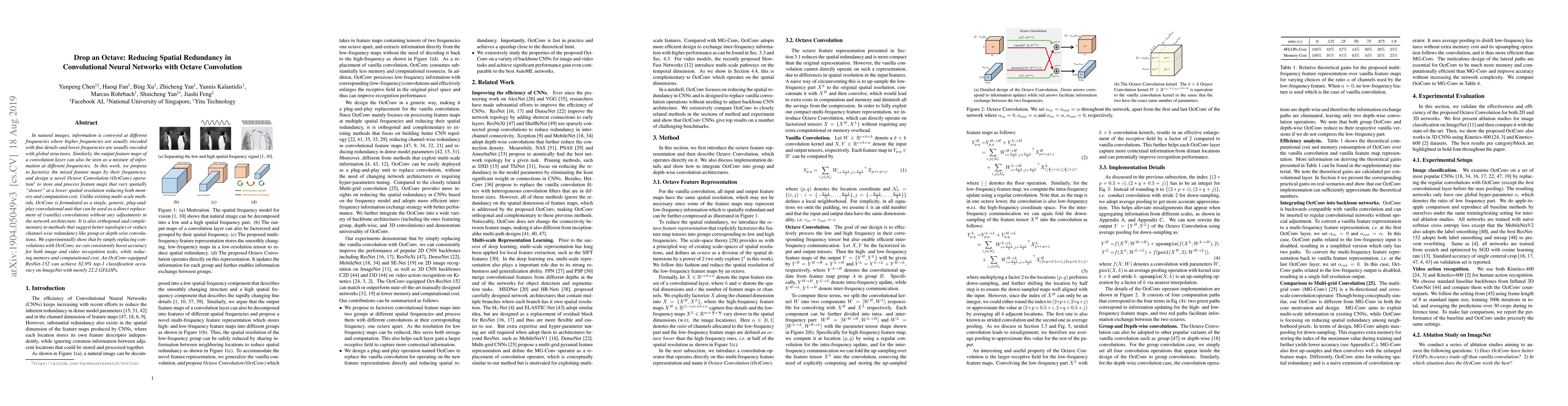 Researchers propose Octave Convolution, a single, generic convolutional unit that reduces spatial redundancy in neural networks, leading to improved accuracy with lower memory and computational cost.