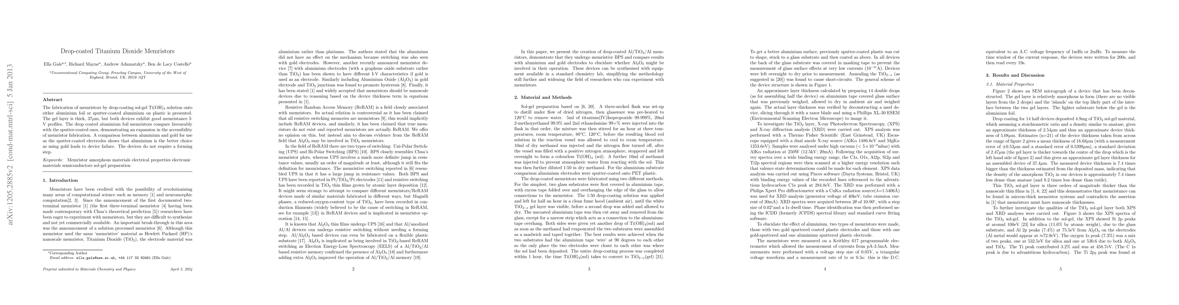 This paper presents the fabrication of memristors using drop-coated titanium dioxide layers from sol-gel Ti(OH)₄ solution on aluminium foil or sputter-coated aluminium on plastic. The drop-coated aluminium foil memristors show good performance and are more accessible compared to sputter-coated ones, with aluminium being the preferred electrode material over gold due to device failure with gold.