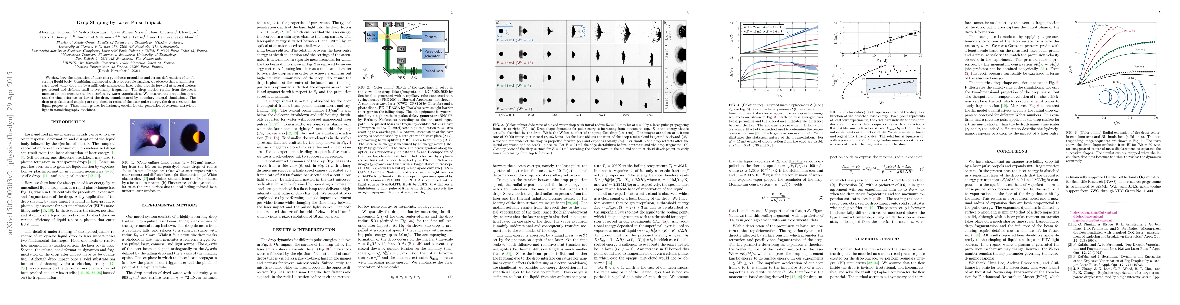 This paper investigates the propulsion and deformation of a water drop induced by a nanosecond laser pulse, demonstrating that the recoil from vaporization drives the drop forward at high speeds, eventually leading to fragmentation. The study combines experimental observations with simulations to explain the effects of laser energy, drop size, and liquid properties on the process.