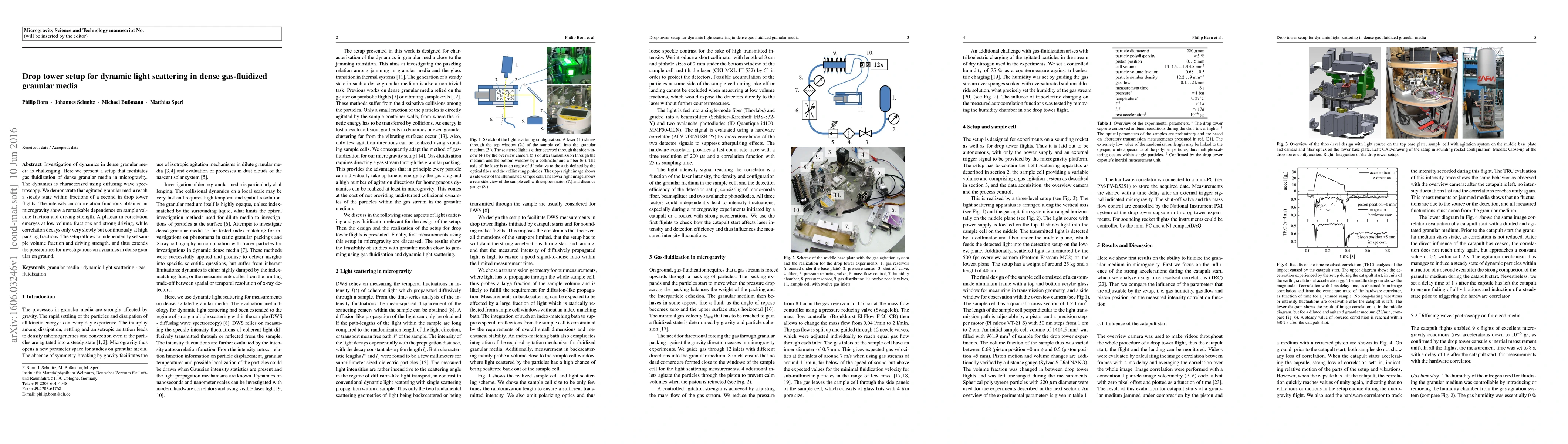 This paper introduces a drop tower setup for studying dynamics in dense gas-fluidized granular media under microgravity, using diffusing wave spectroscopy. The results show distinct behaviors in intensity autocorrelation functions depending on sample volume fraction and driving strength, highlighting the potential for detailed investigations of granular dynamics.