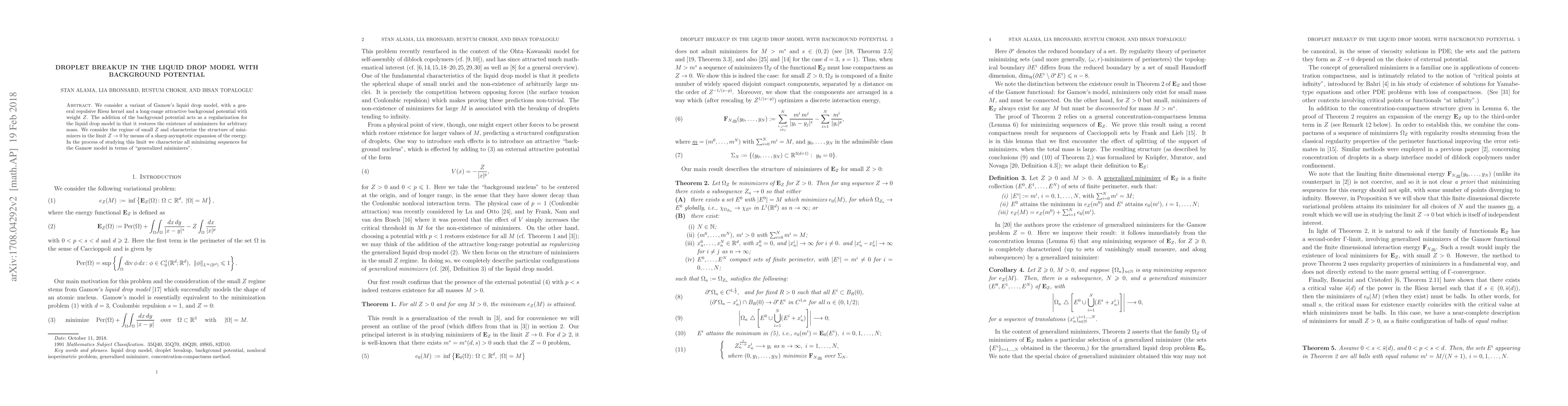 We consider a variant of Gamow's liquid drop model, with a general repulsive Riesz kernel and a long-range attractive background potential with weight $Z$. The addition of the background potential acts as a regularization for the liquid drop model in that it restores the existence of minimizers for arbitrary mass. We consider the regime of small $Z$ and characterize the structure of minimizers in the limit $Z\to 0$ by means of a sharp asymptotic expansion of the energy. In the process of studying this limit we characterize all minimizing sequences for the Gamow model in terms of "generalized minimizers".