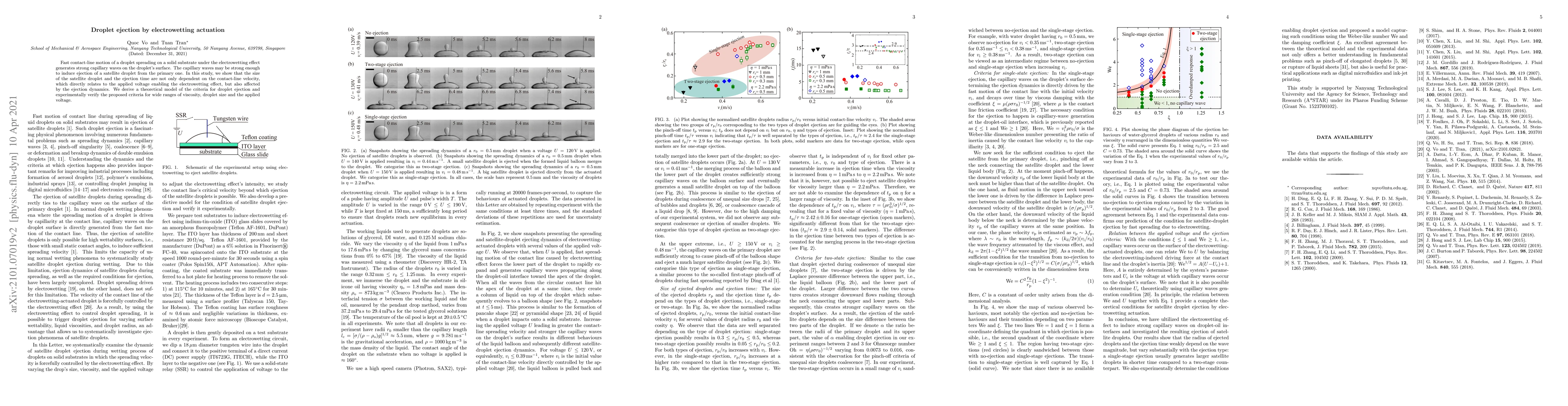 This paper investigates how electrowetting can induce rapid droplet motion and satellite droplet ejection, deriving a theoretical model and experimentally verifying conditions for ejection based on contact-line velocity, viscosity, droplet size, and applied voltage.