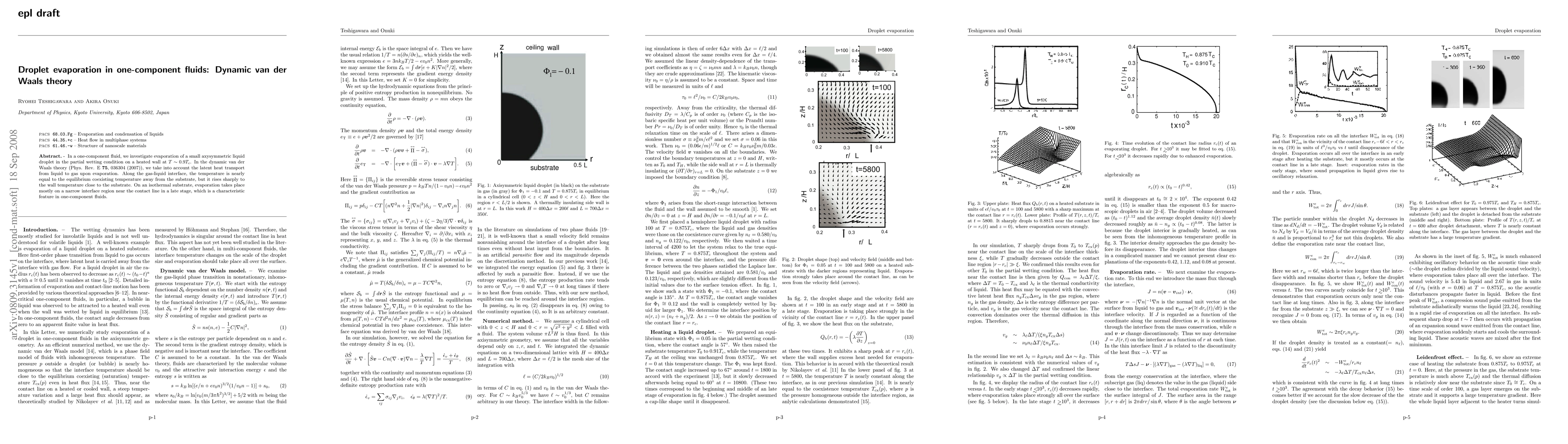 In a one-component fluid, we investigate evaporation of a small axysymmetric liquid droplet in the partial wetting condition on a heated wall at $T\sim 0.9 T_c$. In the dynamic van der Waals theory (Phys. Rev. E {\bf 75}, 036304 (2007)), we take into account the latent heat transport from liquid to gas upon evaporation. Along the gas-liquid interface, the temperature is nearly equal to the equilibrium coexisting temperature away from the substrate, but it rises sharply to the wall temperature close to the substrate. On an isothermal substrate, evaporation takes place mostly on a narrow interface region near the contact line in a late stage, which is a characteristic feature in one-component fluids.