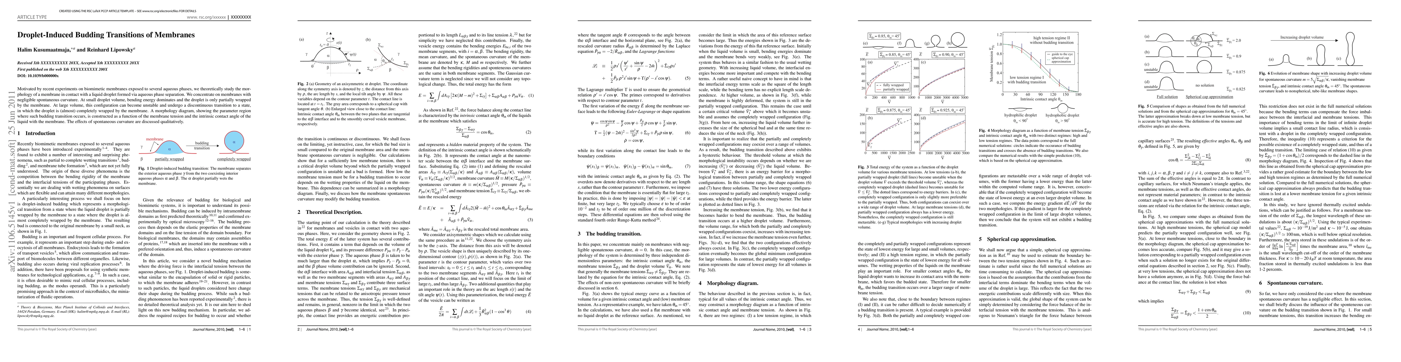 This paper investigates the morphology changes of membranes interacting with liquid droplets, finding that small droplets cause partial wrapping while large droplets induce a discontinuous transition to full wrapping. The study constructs a morphology diagram based on membrane tension and contact angle, and discusses the qualitative effects of spontaneous curvature.